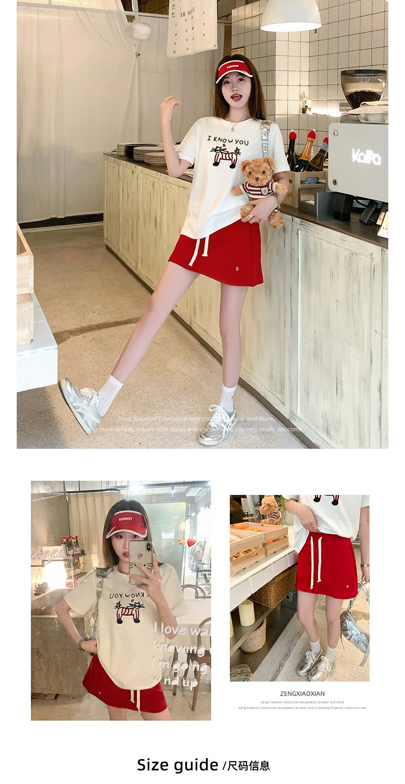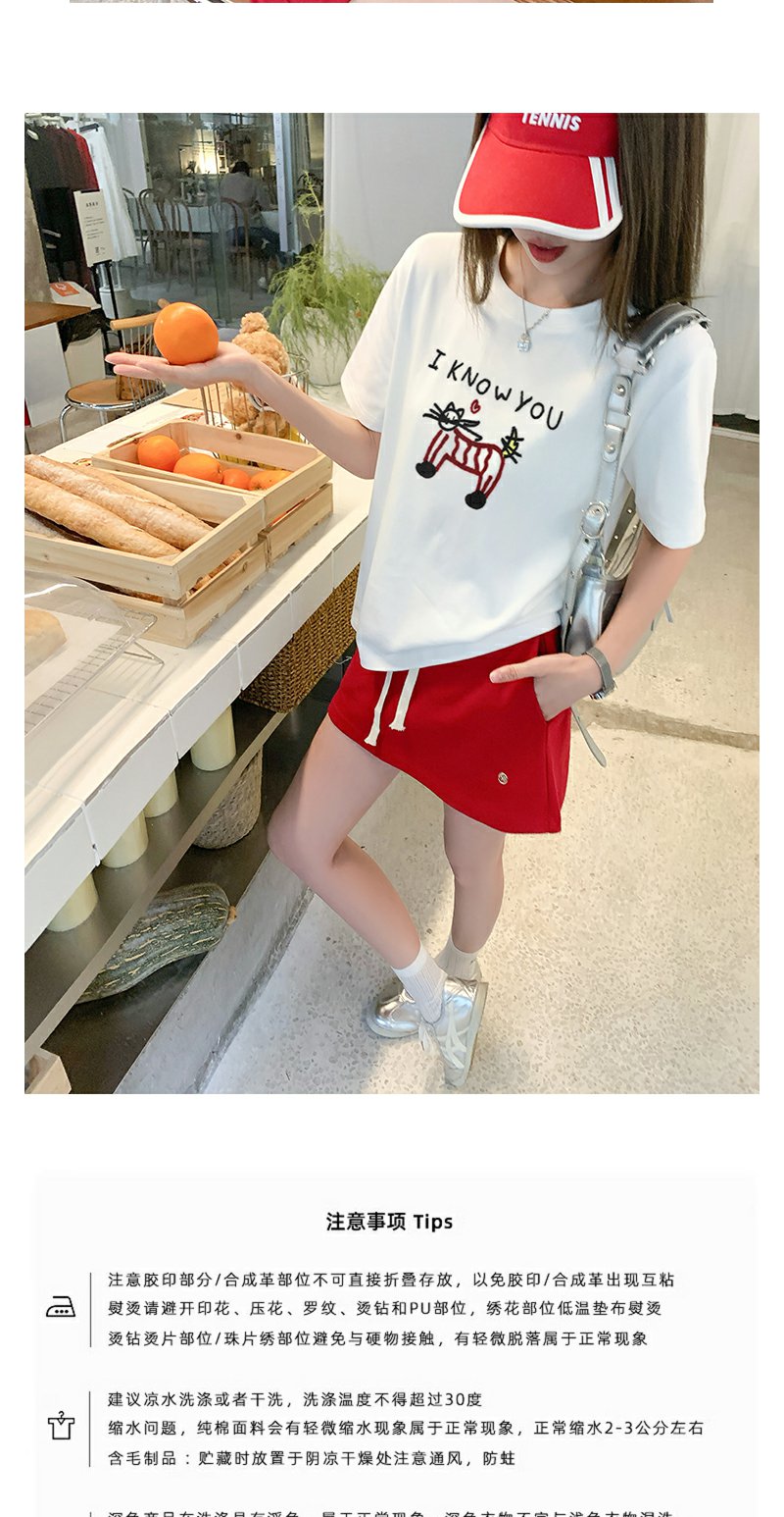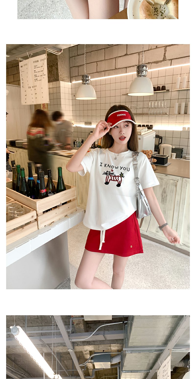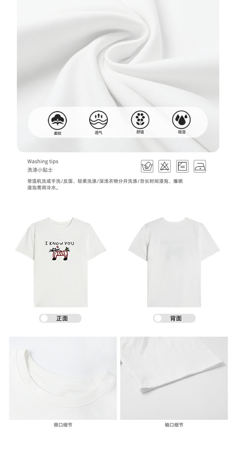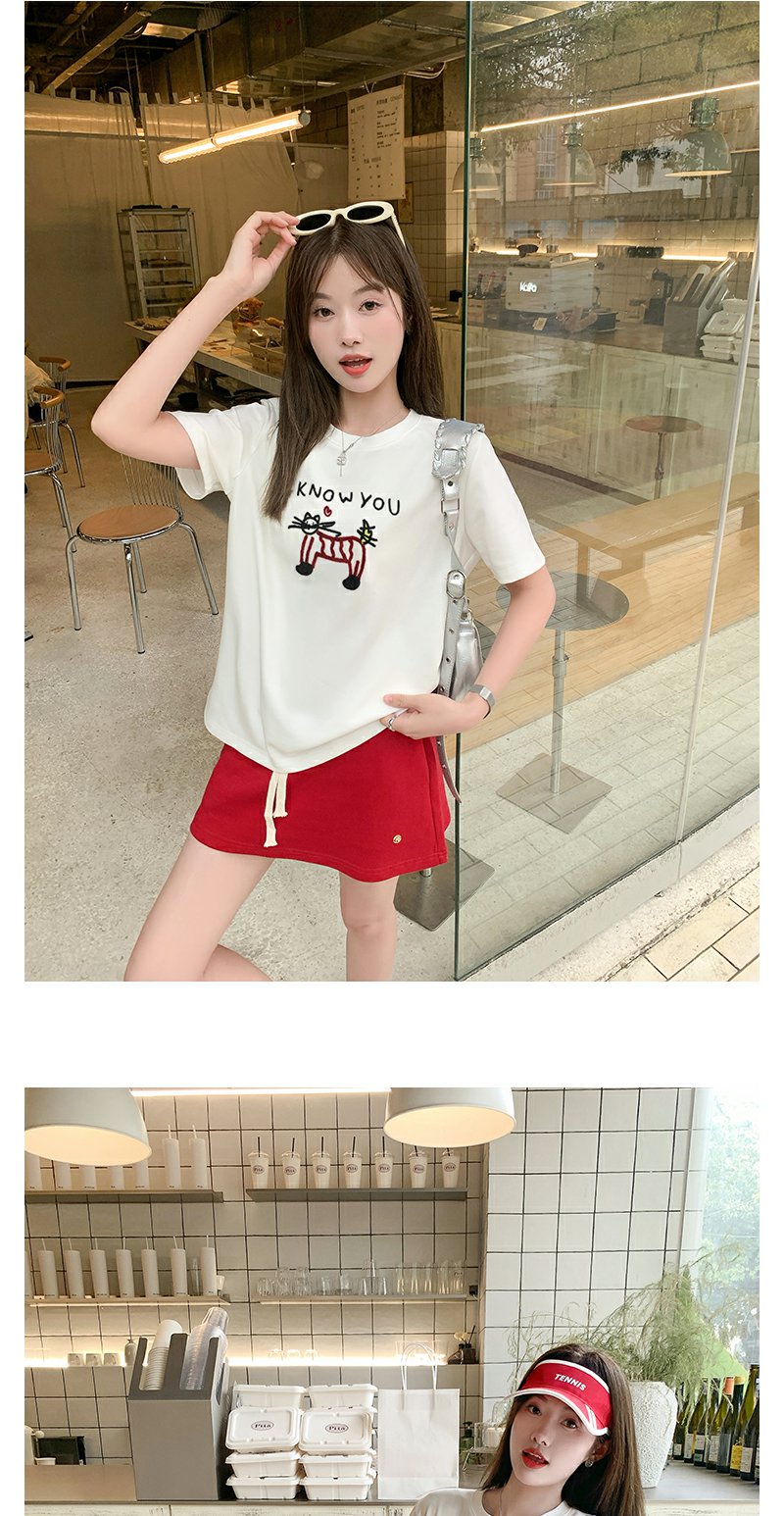<曾小咸推荐>休闲百搭白色猫咪字母绣花短袖T恤