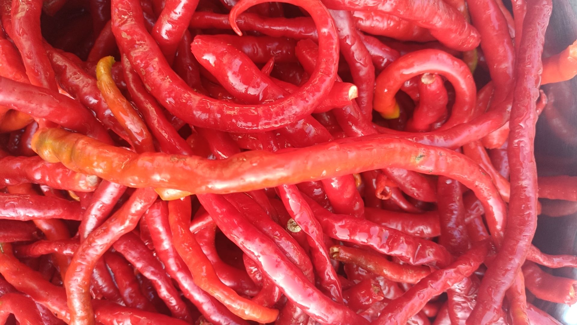 辣椒和姜都来源于草莓基地地块。辣椒是本地老种子(长约25-30厘米)。