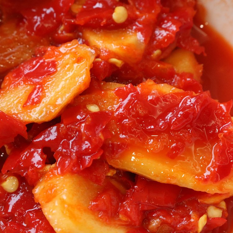 土坛子,低温储存、自然发酵出的糟辣椒,浓香扑鼻,酸是发酵出的柔和果酸,辣是辣椒本身刚刚好刺激到味蕾的清新微辣,香是窖酒似的回味醇香,扑面浓香,口水四溢。即使空口吃也不会直愣愣的辣到发懵。舌尖一碰,娇婉清丽的酸,就像朦胧中的一点亮让整个人都清明许多,再在辣的火热烘衬下,暖而不燥,直入心扉。