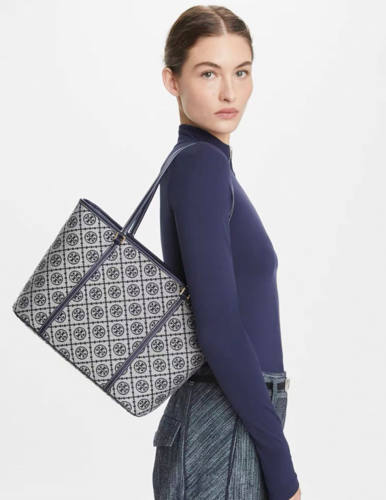 经典TMonogram图案,搭配提花织物。魅力隽永又风格独具。大号托特包采用细腻皮革饰边,配有拉链扣。采用柔软的棉质内里,内有可拆卸拉链小包口袋。每个细节均经过精心考究,尤其注重功能性与多样性的结合。