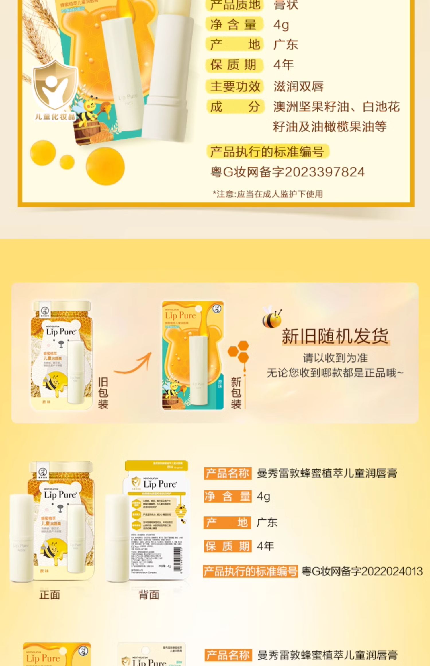 曼秀雷敦 蜂蜜植萃儿童润唇膏 4g