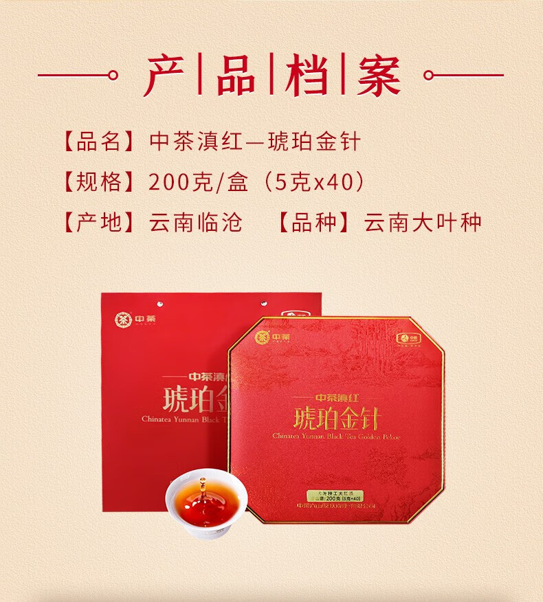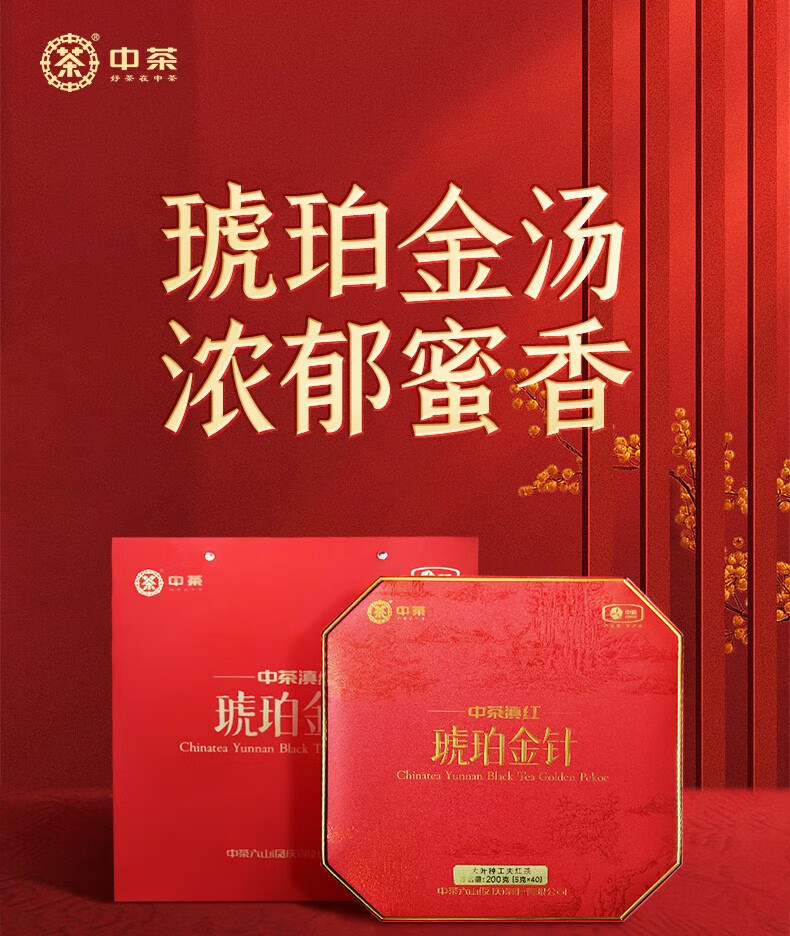 【自营】中茶滇红琥珀金针特级工夫红茶独立小袋装红茶礼盒200g