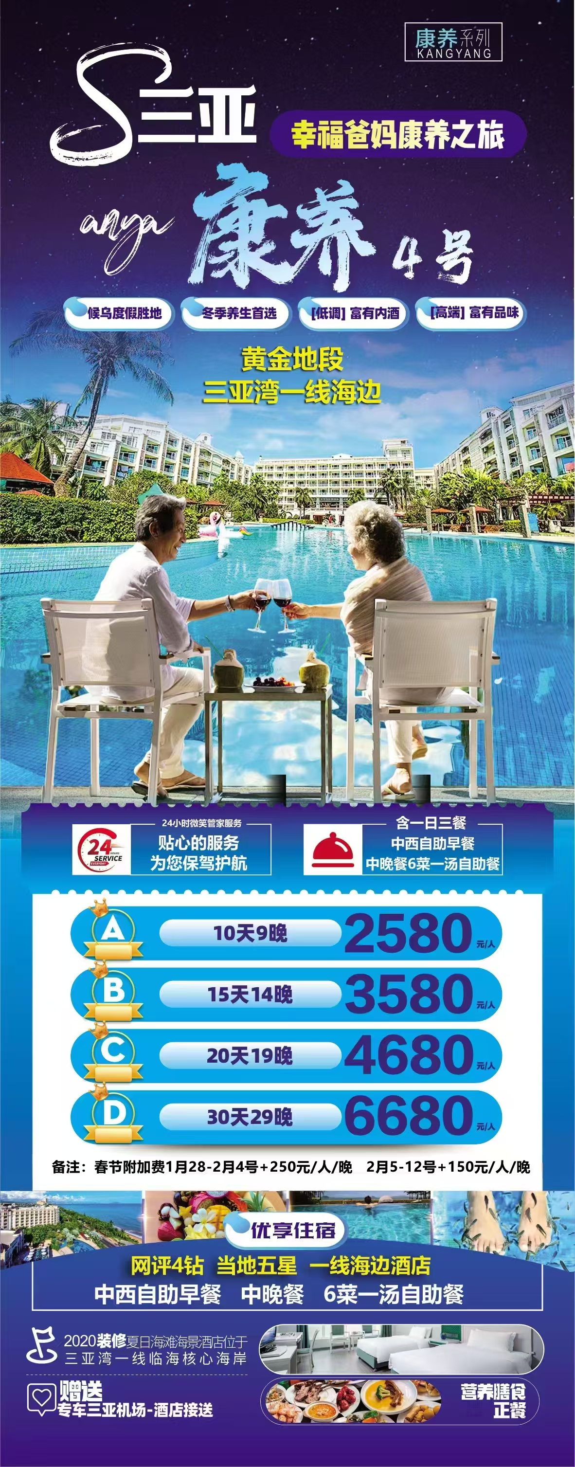 三亚之旅 康养4号幸福爸妈康养之旅 黄金地段三亚湾一线海边园景双标间 含一日三餐