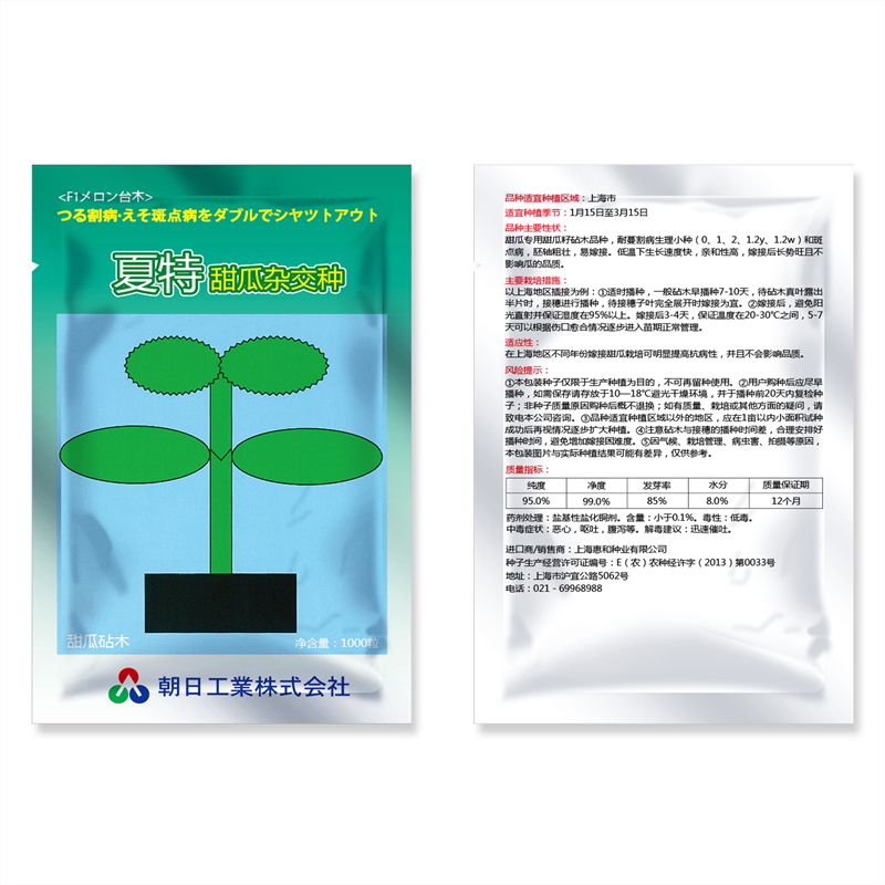 甜瓜专用甜瓜籽砧木品种,耐蔓割病生理小种(0、1、2、1.2y、1.2w)和斑点病,胚轴粗壮,易嫁接。低温下生长速度快,亲和性高,嫁接长势旺且不影响瓜的品质。