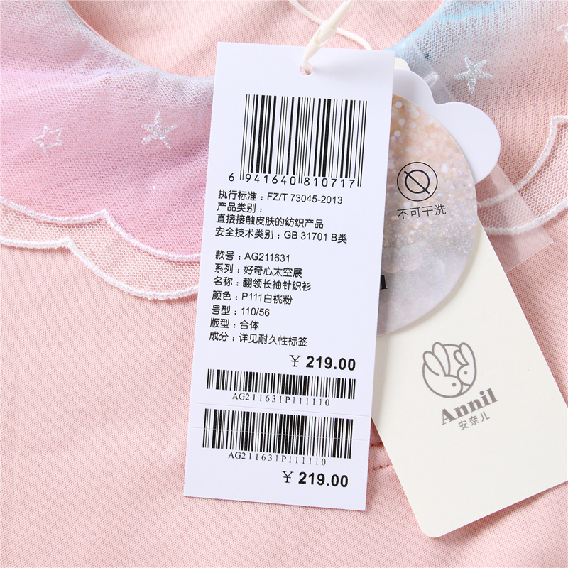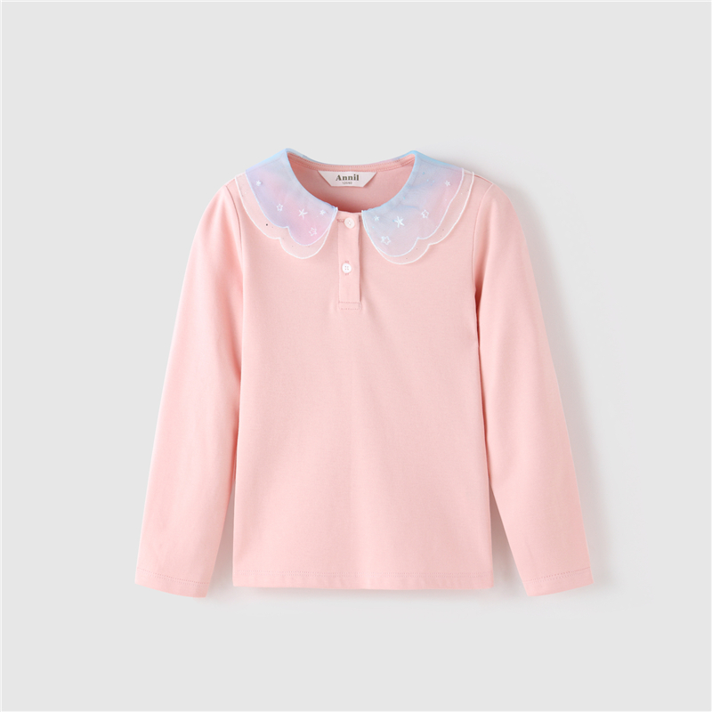安奈儿女童翻领长袖针织衫ag211631