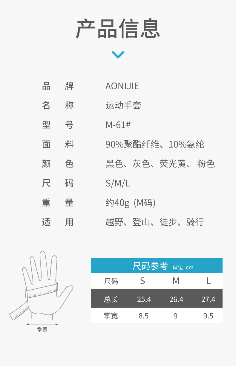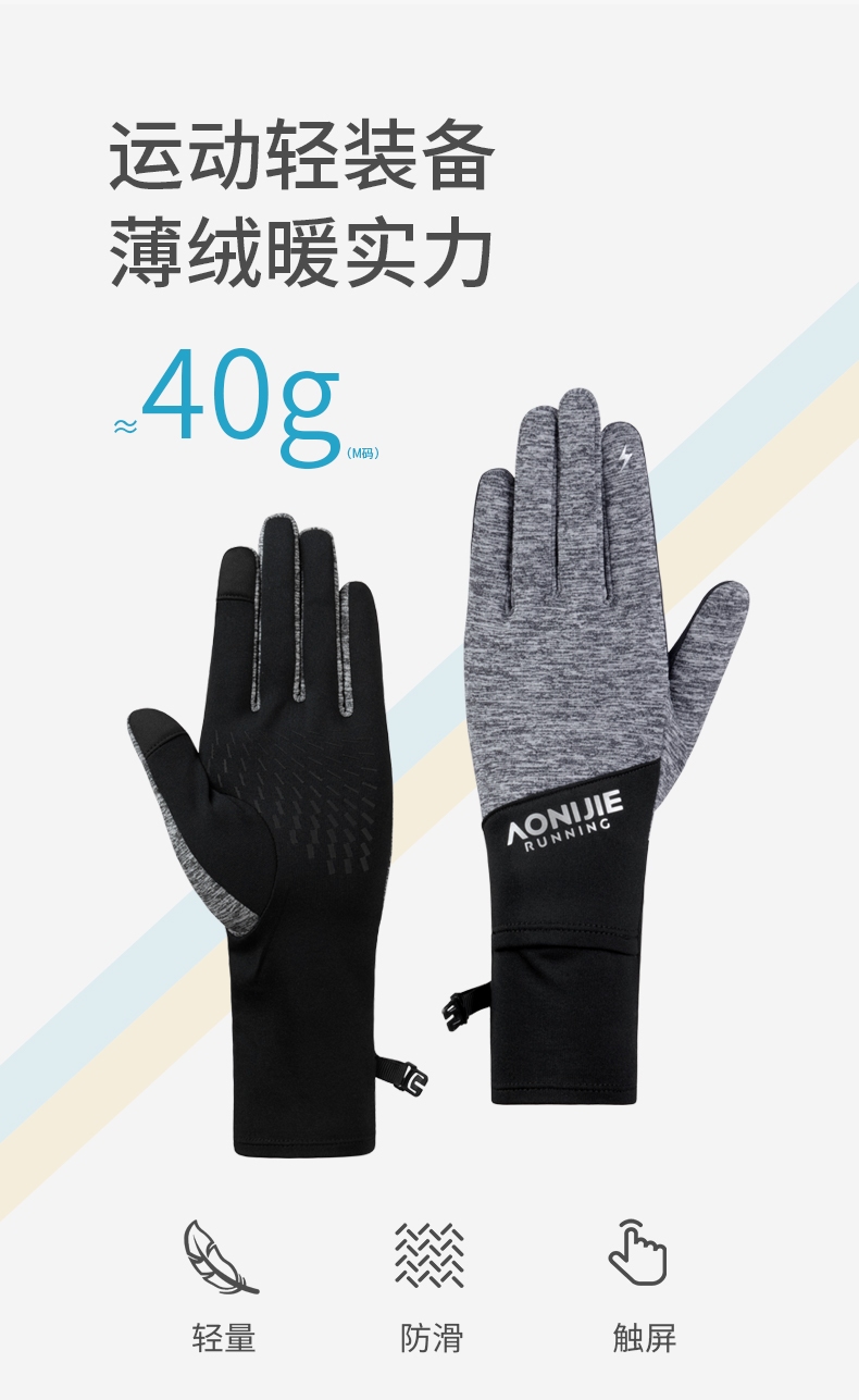 奥尼捷 专业户外运动防滑透气骑行薄绒手套「可触屏」