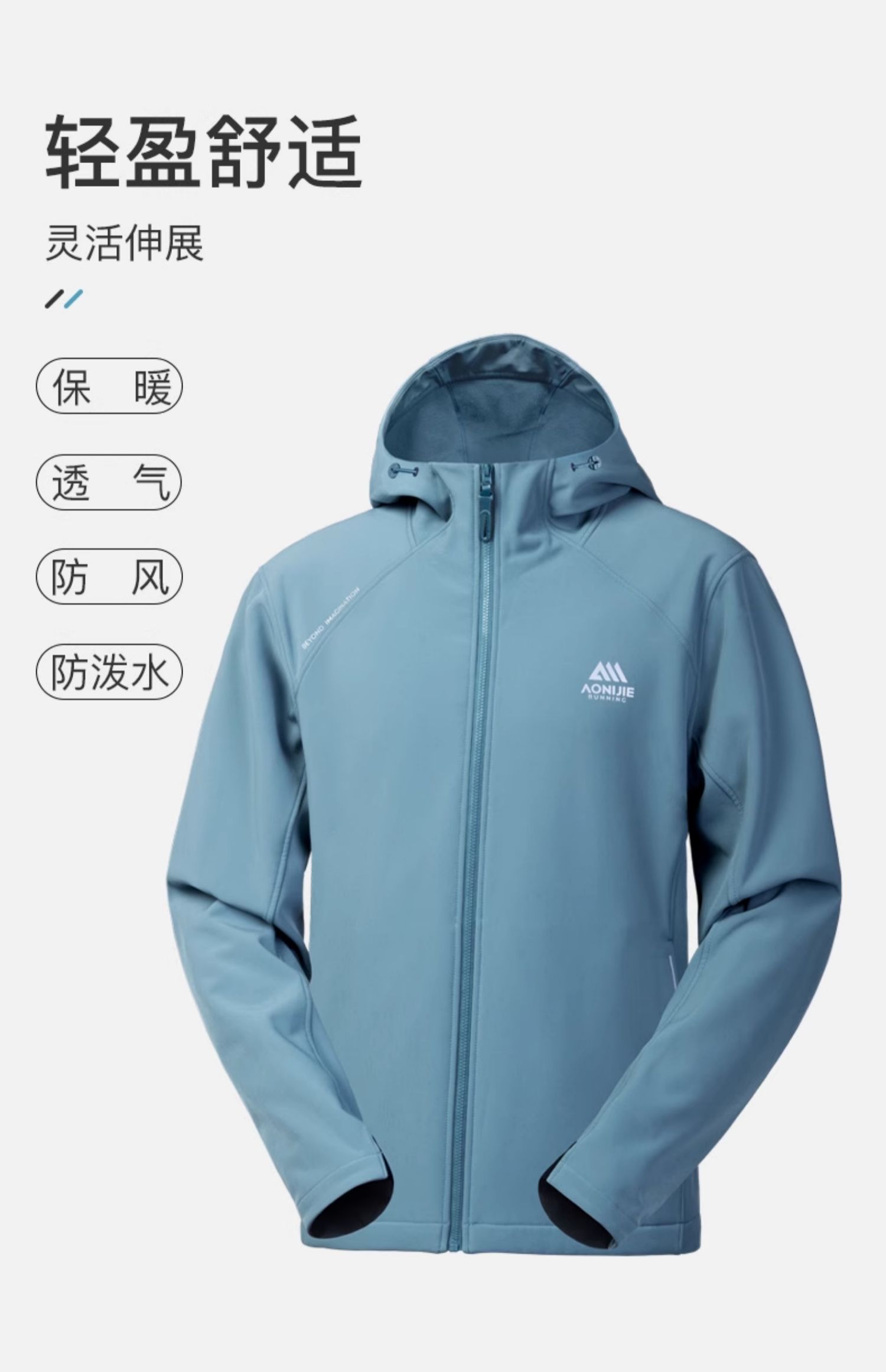 奥尼捷防风软壳冲锋衣运动夹克防泼水男秋冬户外徒步保暖连帽外套
