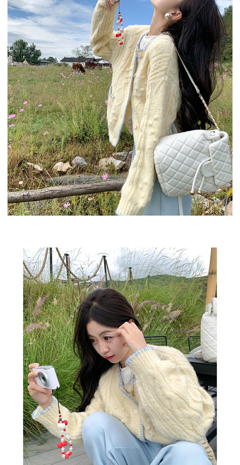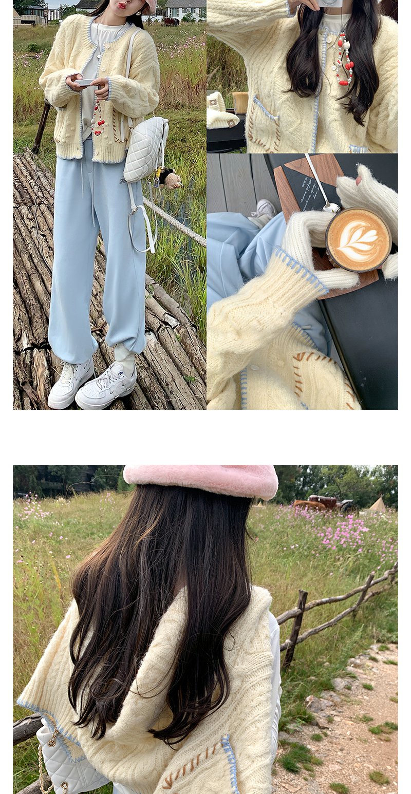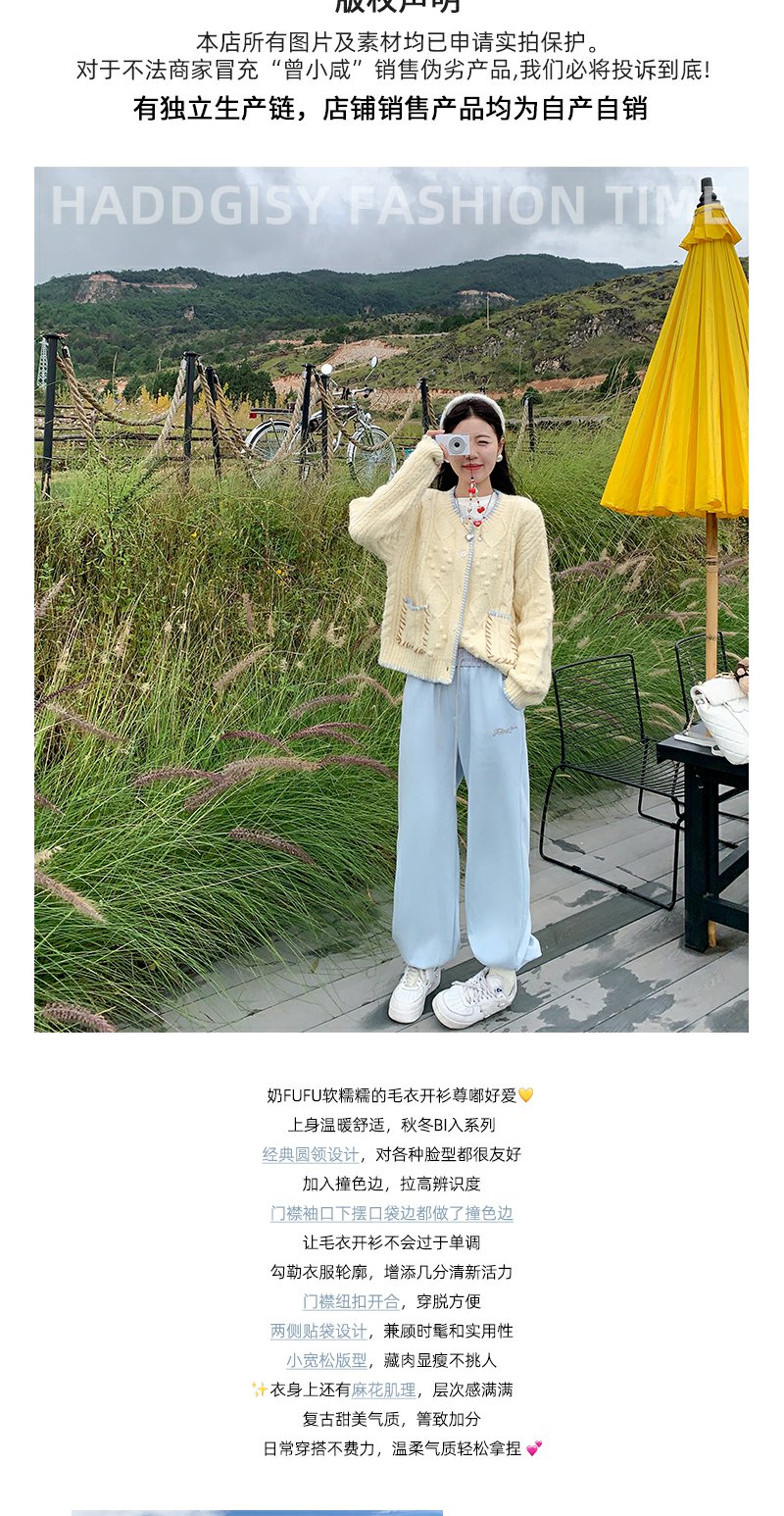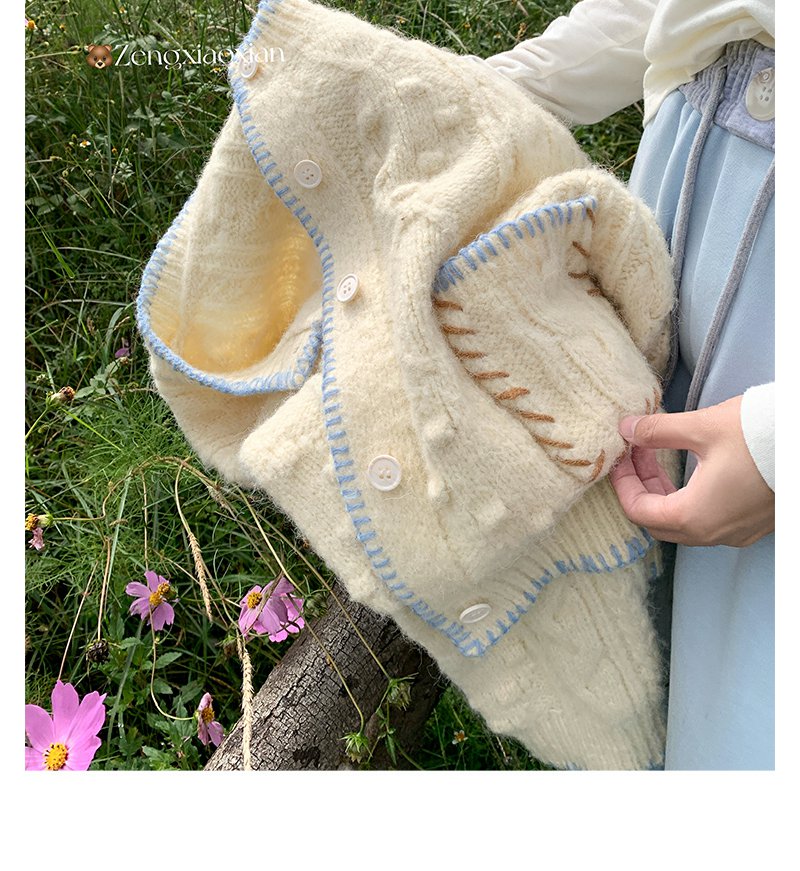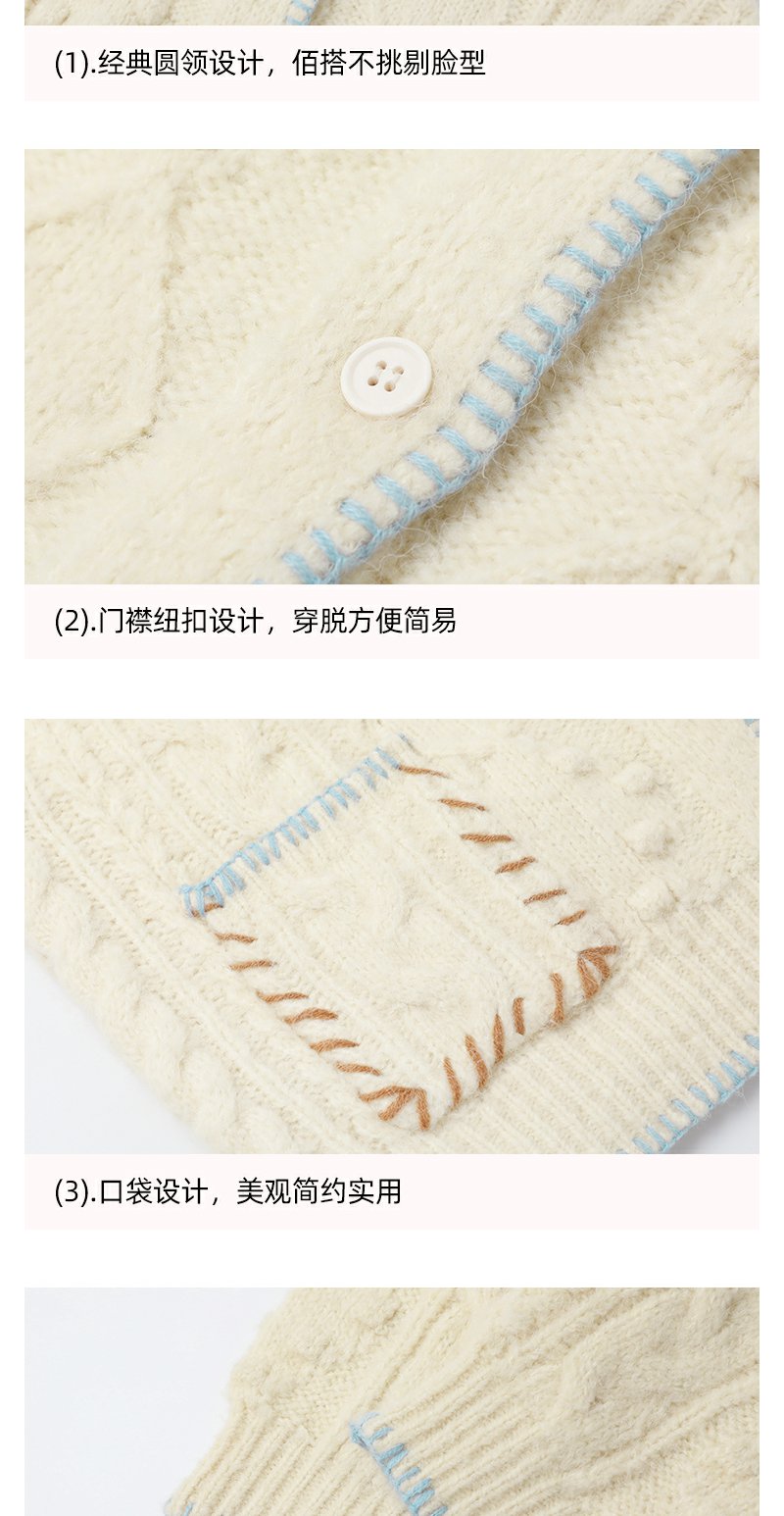 <曾小咸推荐>法式慵懒米杏色系扣圆领毛衣