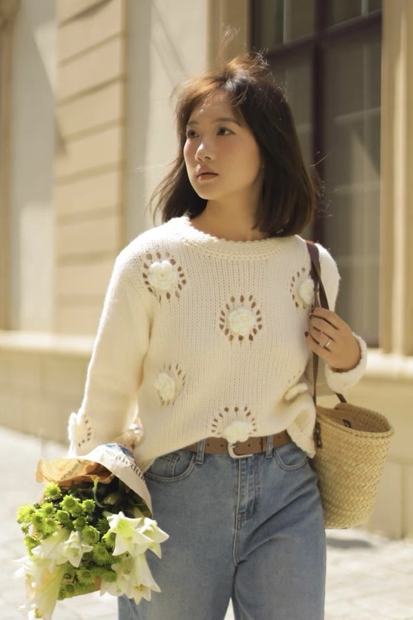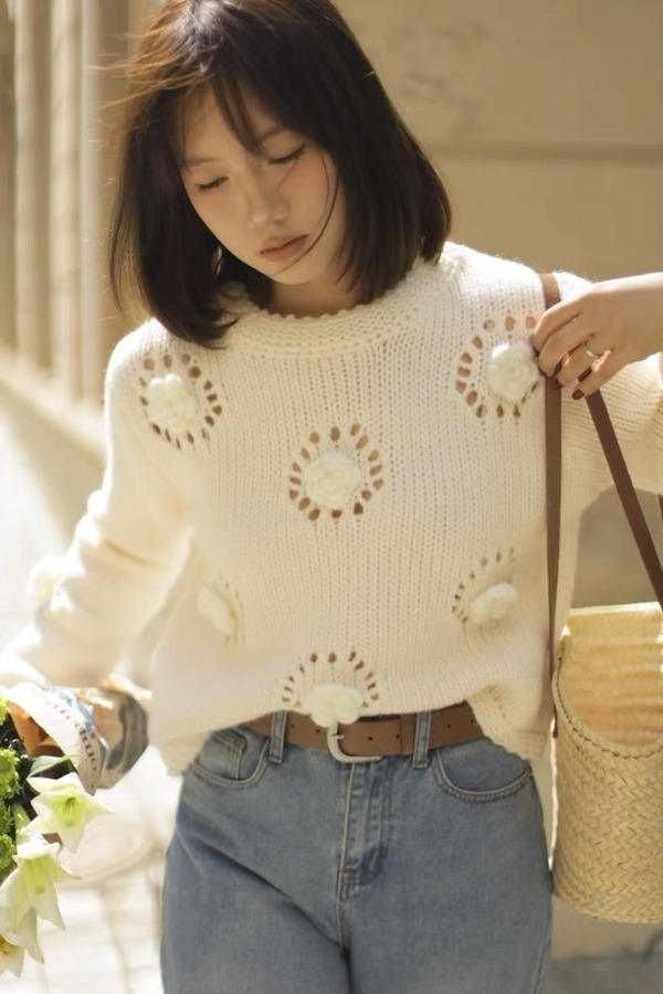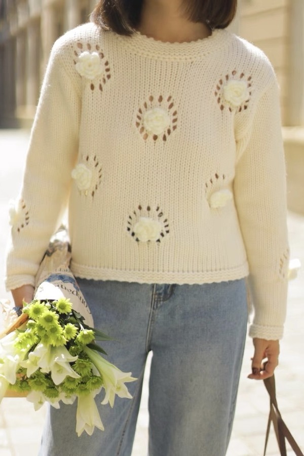 Stay2Weeks 立体编织花朵镂空针织上衣 19166