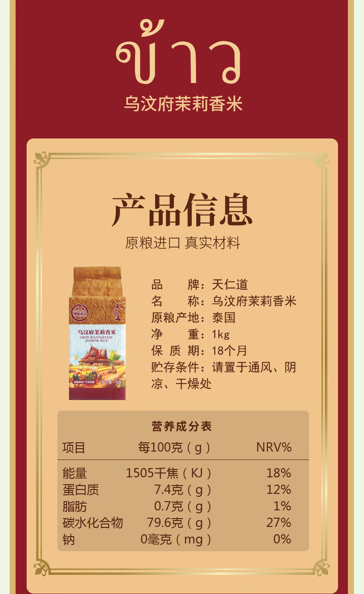 天仁道乌汶府茉莉香米1kg/袋