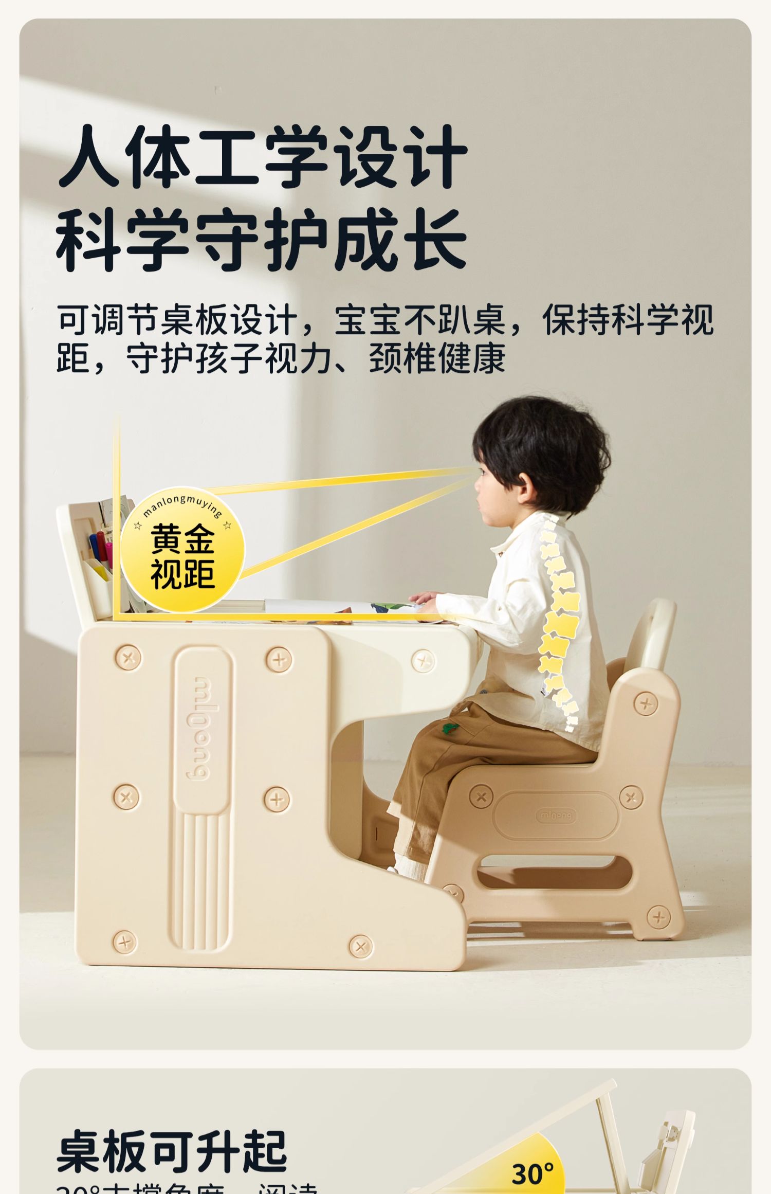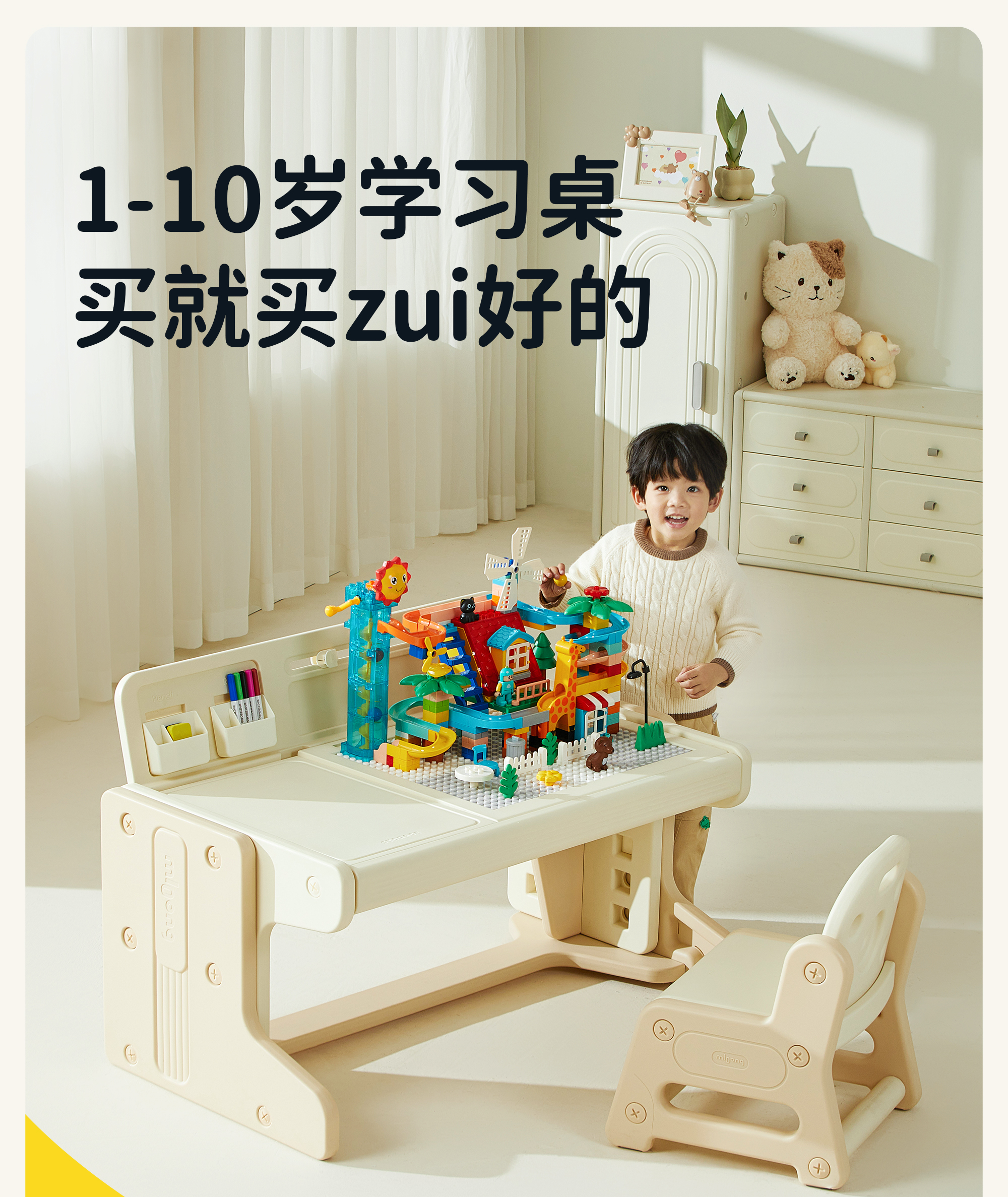 【冬日暖拥】曼龙mloong儿童书桌学习桌可升降桌椅写字桌宝宝积木桌游戏玩具桌幼儿园ProMax