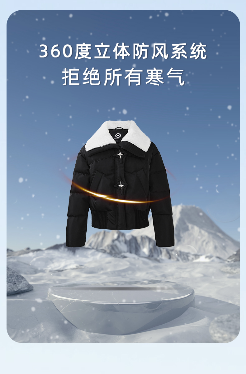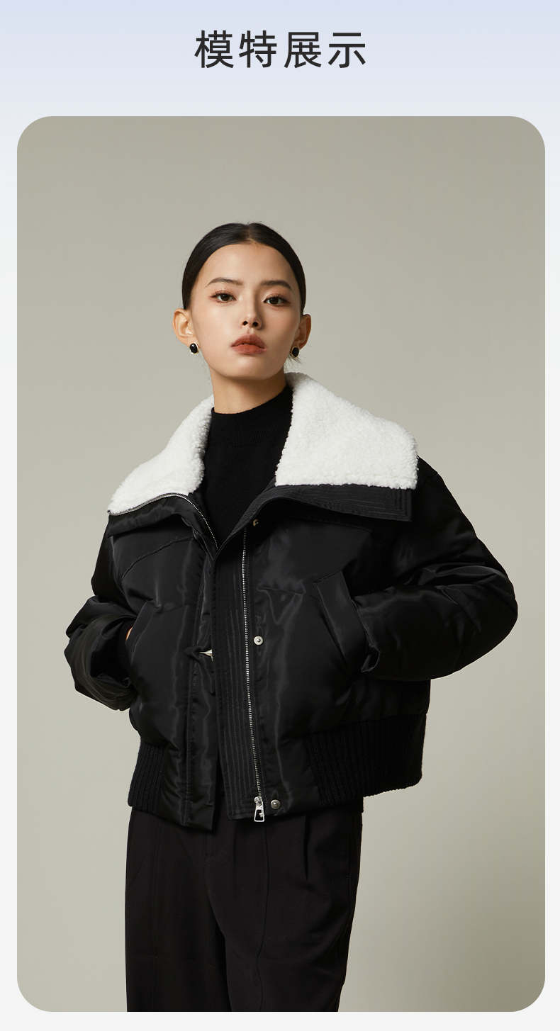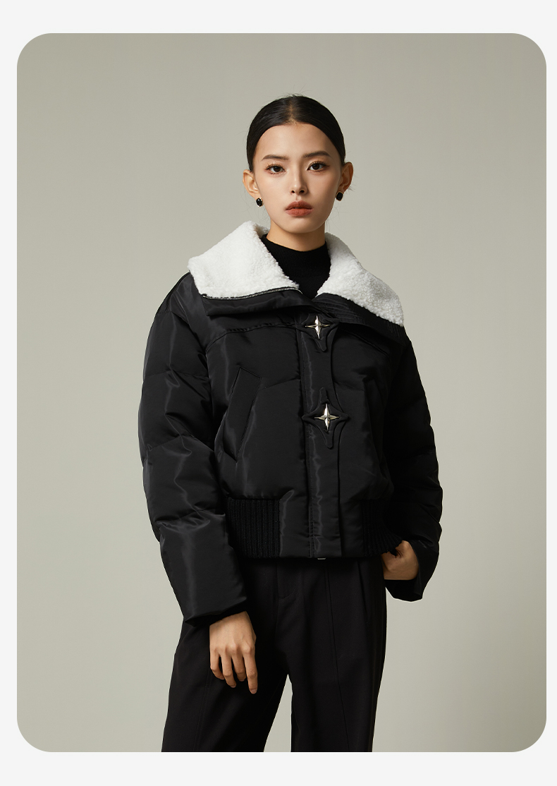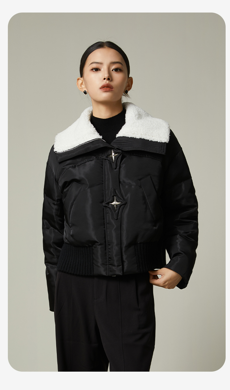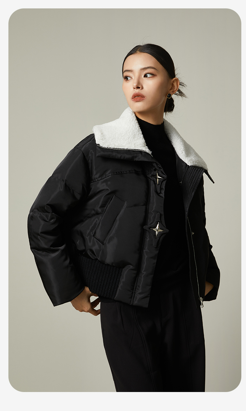 【设计师专柜】罗宾汉翻领羊羔毛领拼接羽绒服女时尚短款秋冬-R238Y5995