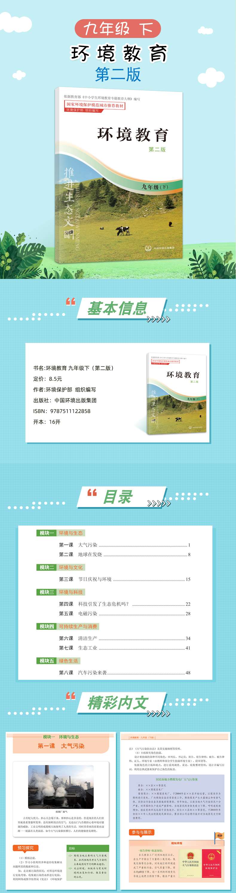 环境教育 第二版 九年级下 环保模范城市教材 环境科普读物 环境保护 中国环境出版社 9787511122858