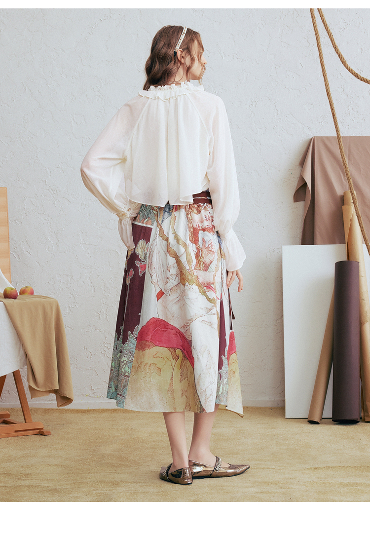 衬衫 两三事瞬息宇宙夏季 复古抽象油画印花灯笼袖雪纺衫女宽松