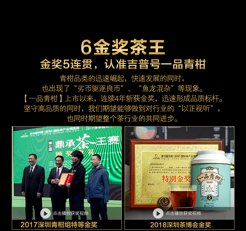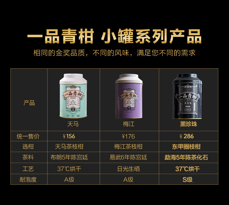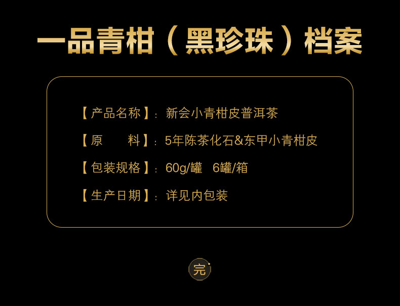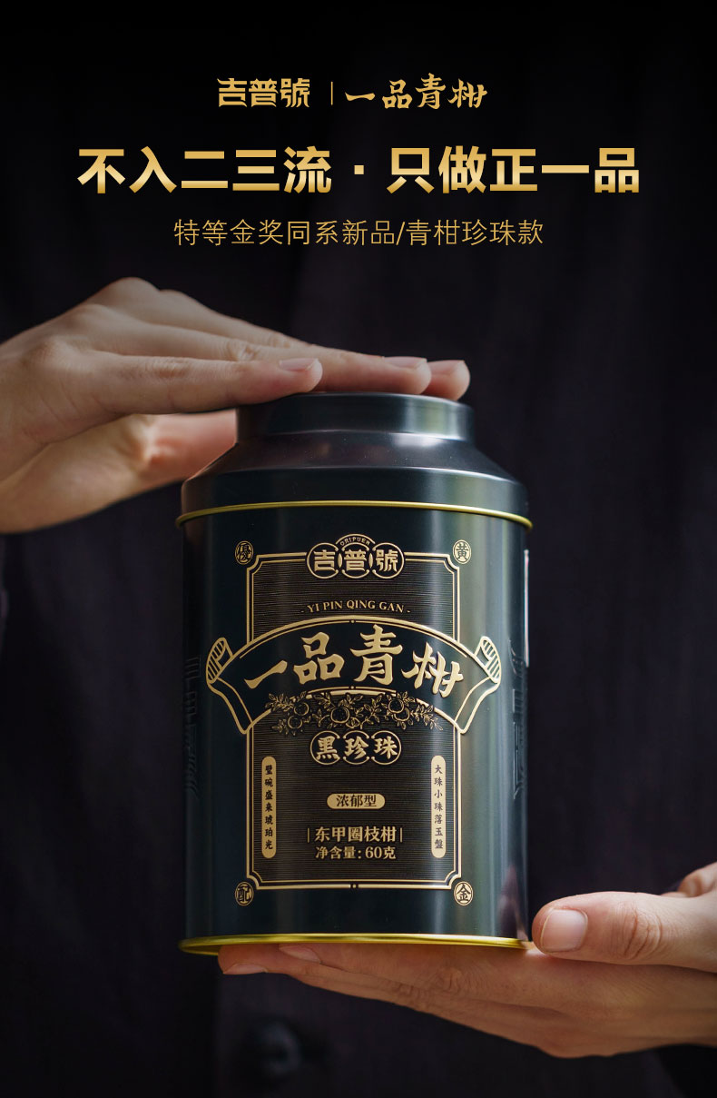 【茶王奖】吉普号 一品青柑黑珍珠 东甲小青柑皮+5年陈茶化石 60g/罐(天猫京东同款)