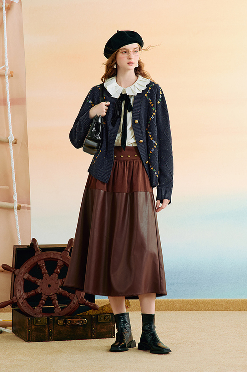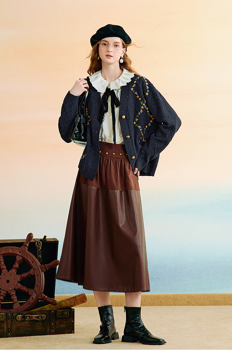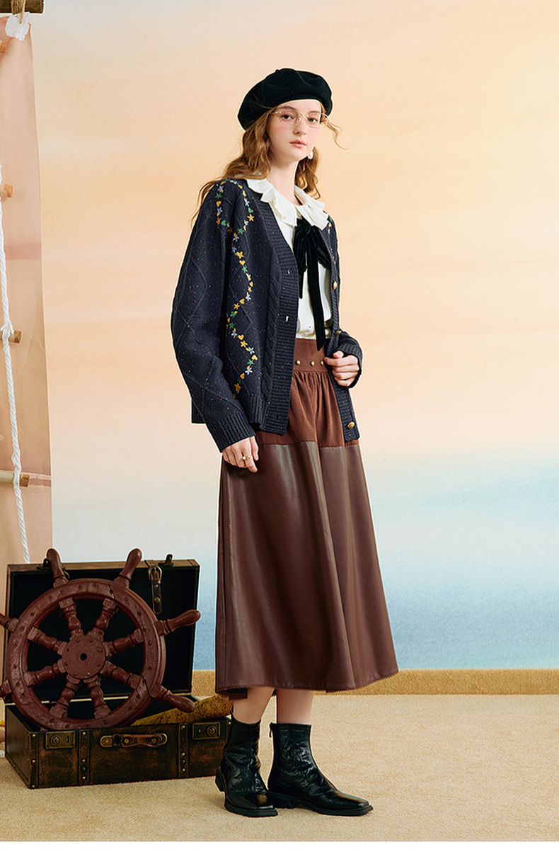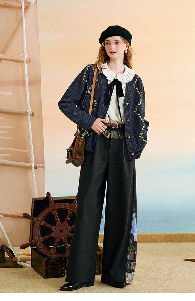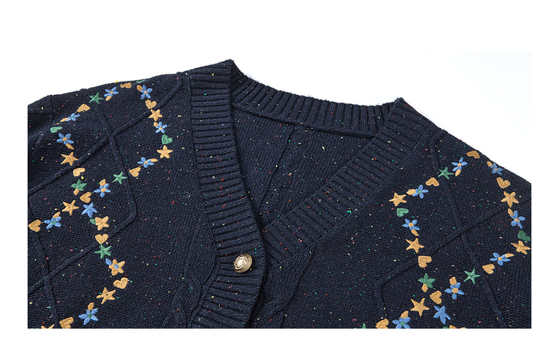 两三事 星屑罗裳 2025秋季新款复古刺绣毛衣开衫女宽松
