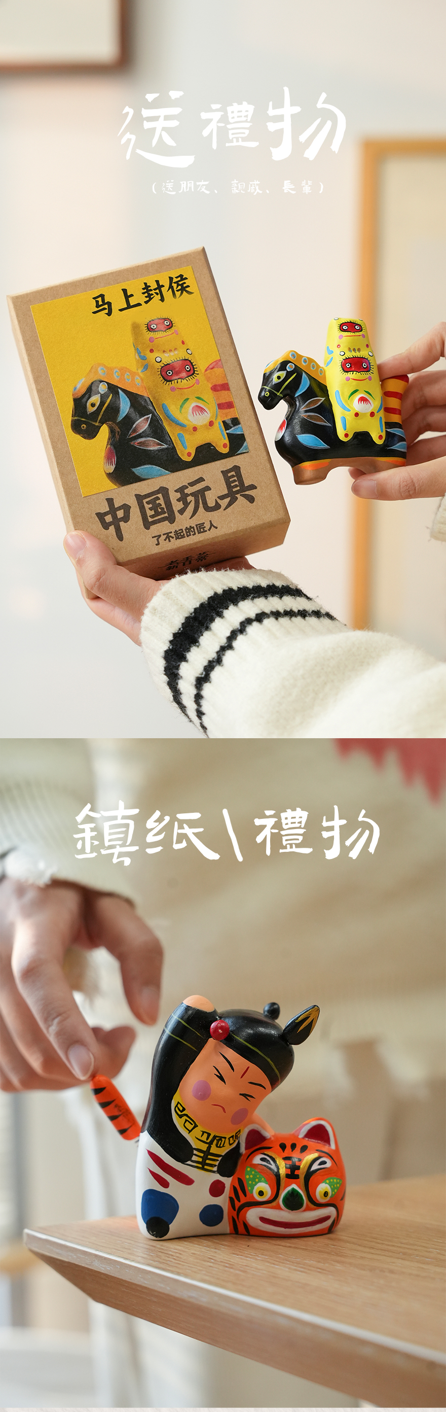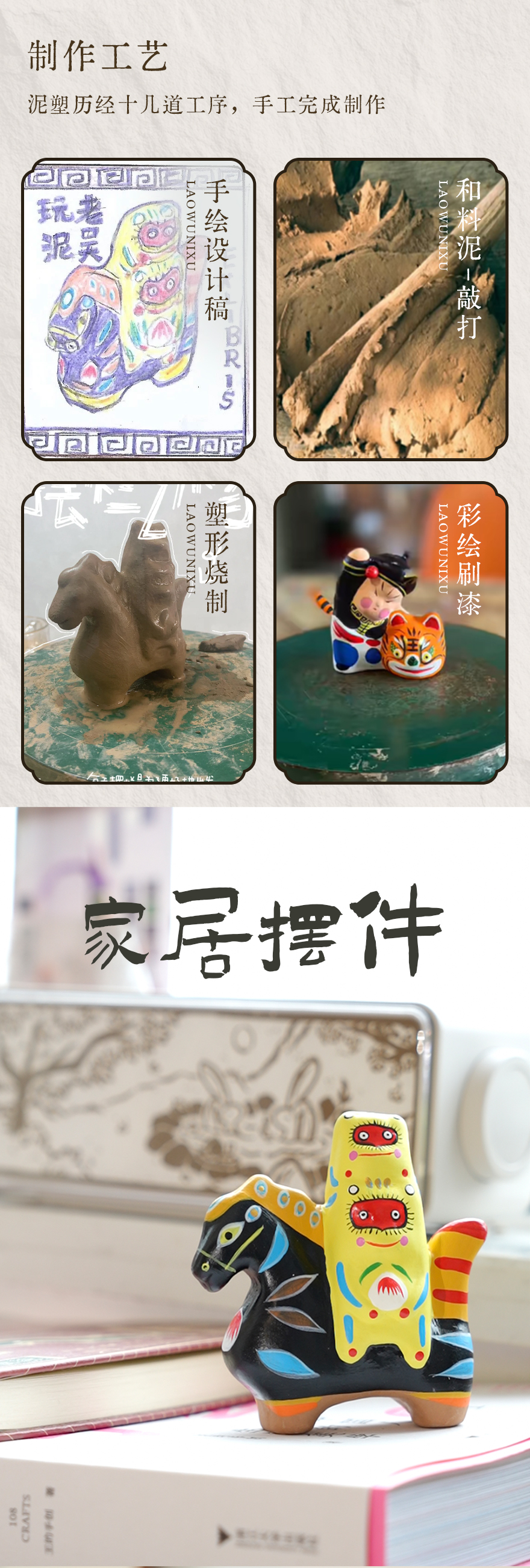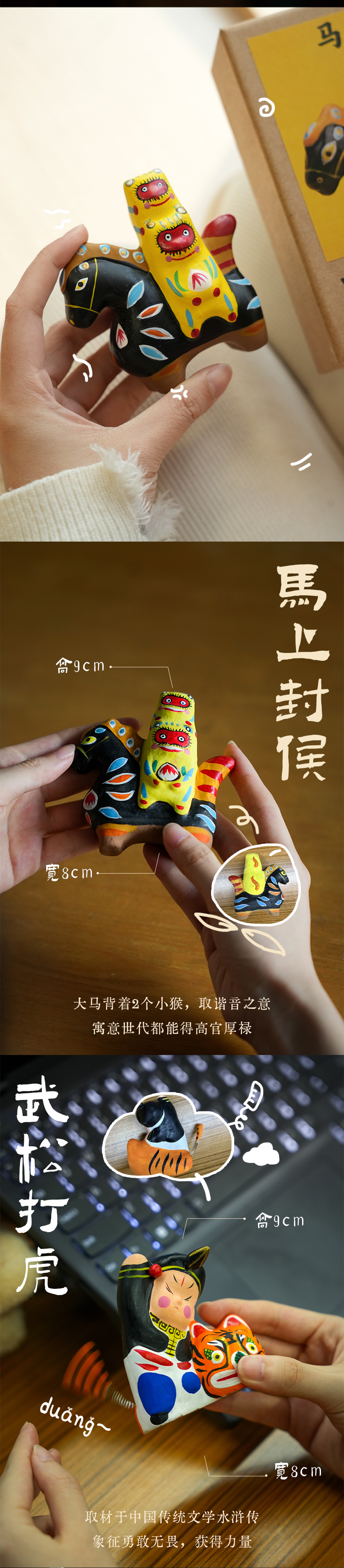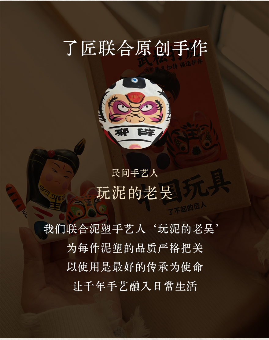 泥塑彩绘泥人玩具摆件 武松打虎马上封侯装饰品手工艺品