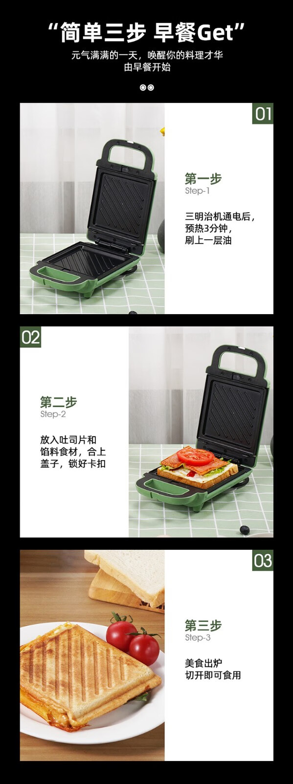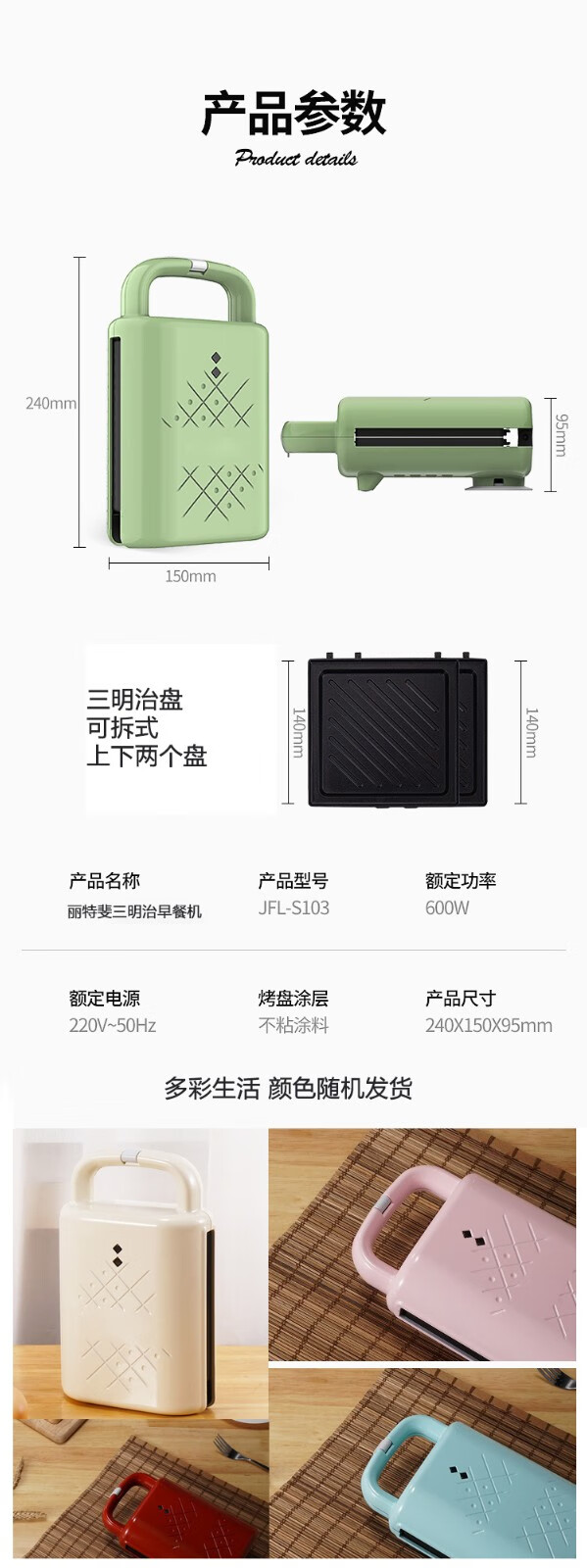 【小家电】丽特斐三明治机早餐机家用轻食多功能烤面包机JFL-S103 HF