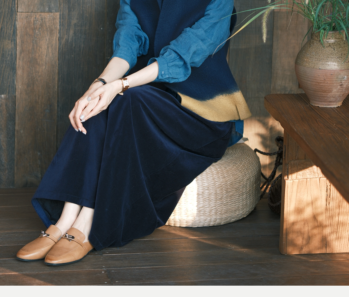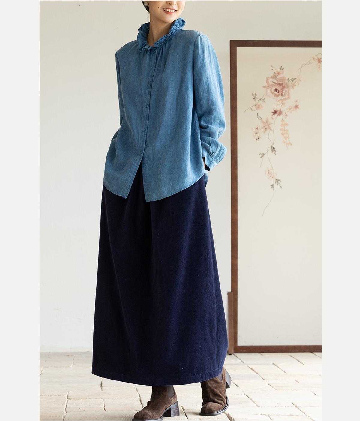 牧衣游原创 绒感纯棉净色半身裙冬柔软舒适保暖百搭A字半裙 无束