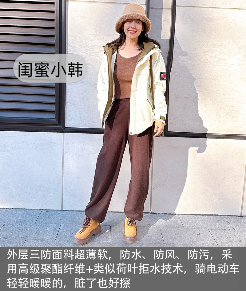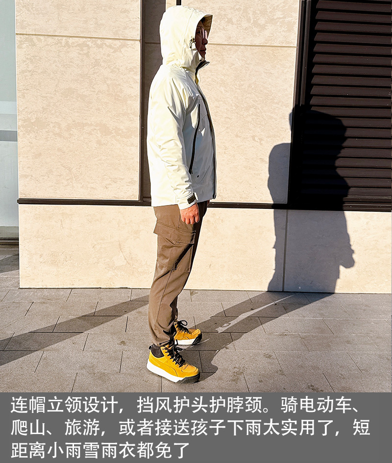 连帽+立领 | 帽子为户外活动提供防护,立领挡风护脖颈。比如出去爬山、旅游,或者日常下雨的时候就可以用上。