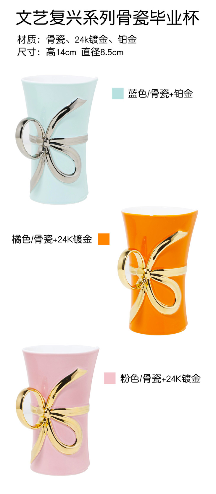 【亏本清仓】ROYALPalax毕业杯24K镀金骨瓷水杯咖啡杯[福利品]