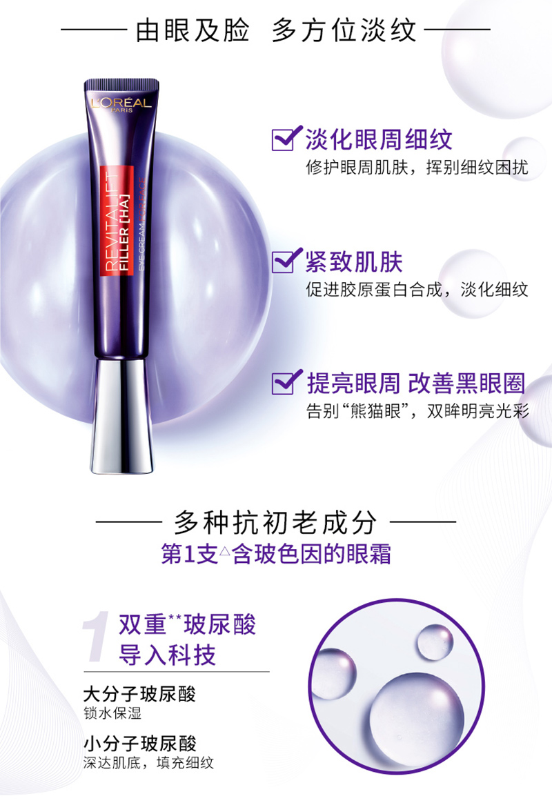 欧莱雅 复颜玻尿酸水光充盈全脸淡纹眼霜30ml