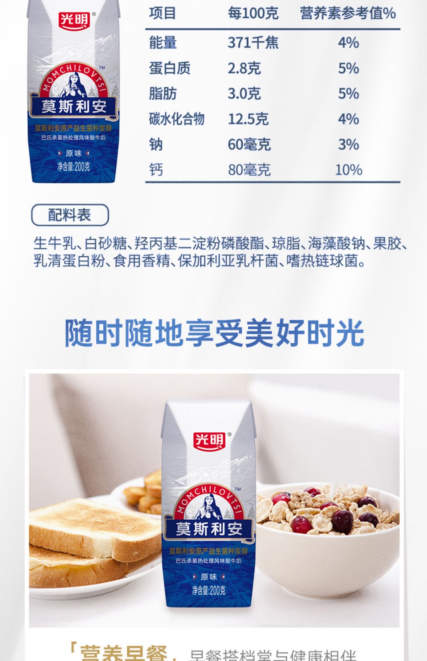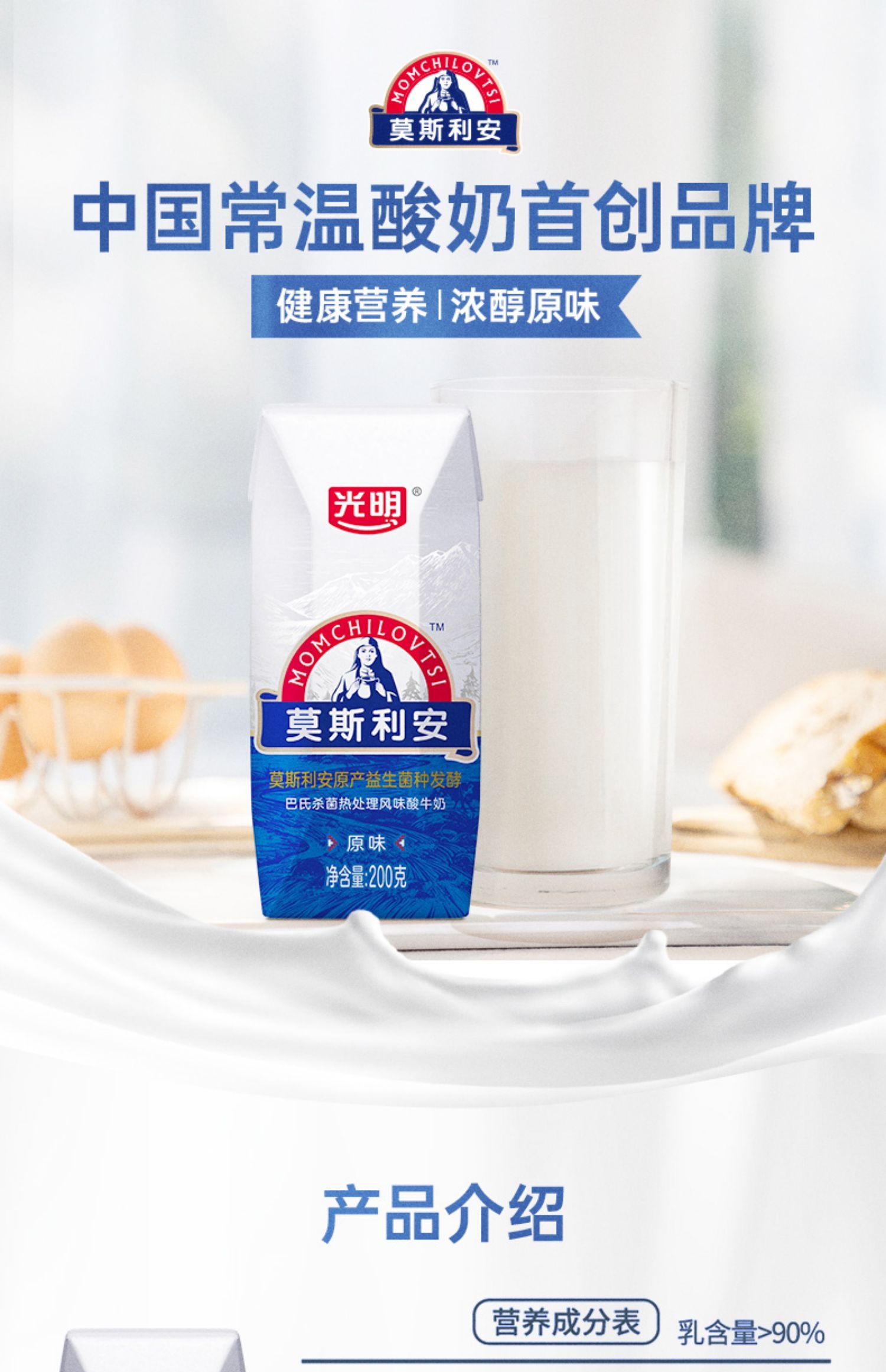 YS 光明 莫斯利安酸奶 原味 200gx12盒(新老包装随机发出) 10039005
