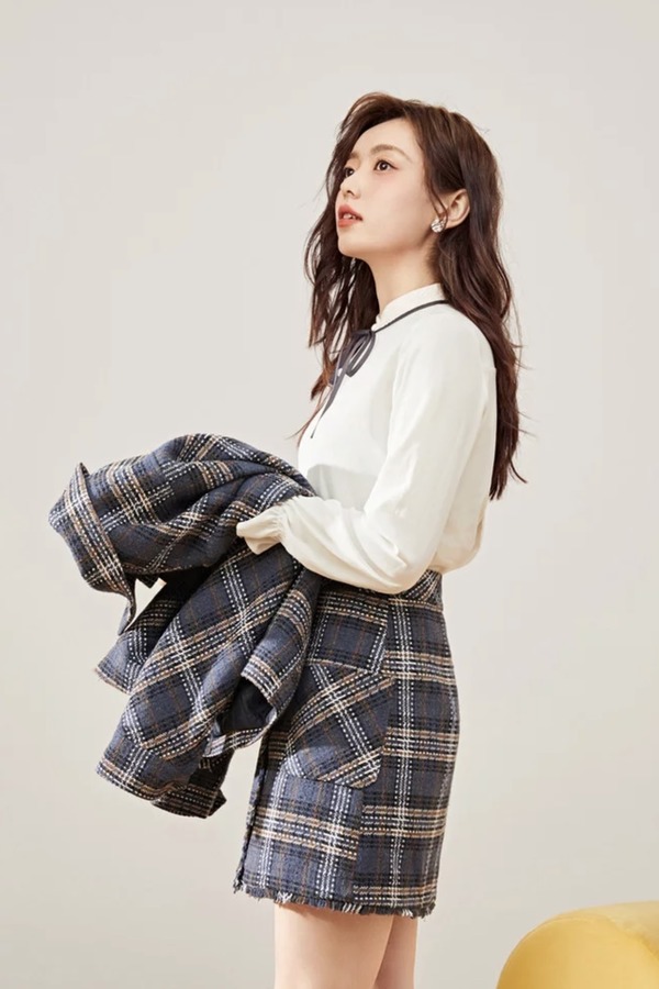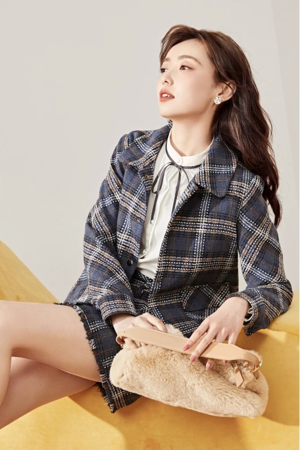 Rosel 格纹时髦外套半裙小香风套装 15157