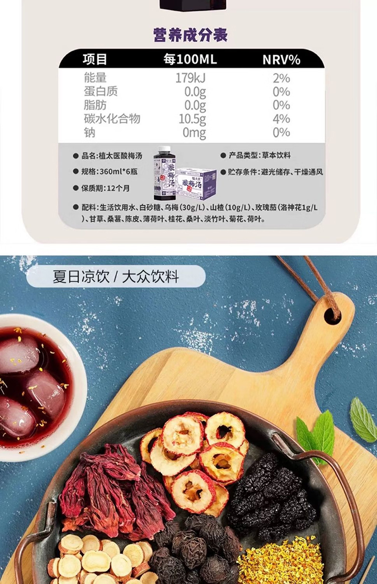 植太医酸梅汤陈皮荷叶乌梅山楂清爽解腻酸甜可口夏季草本饮料品 酸梅汤360ml*15瓶