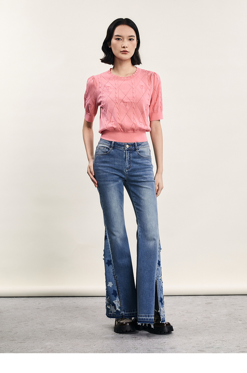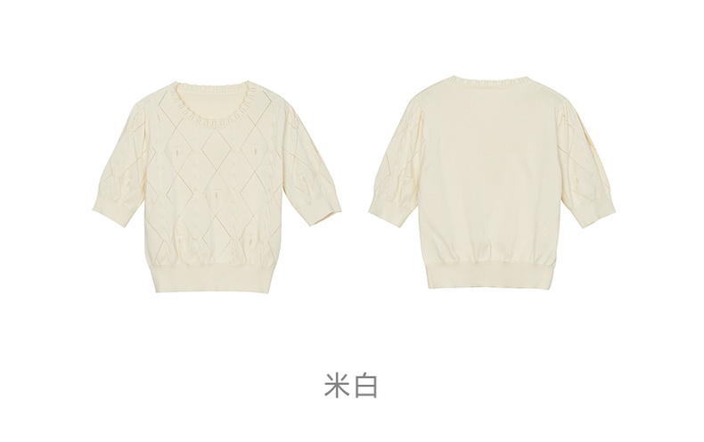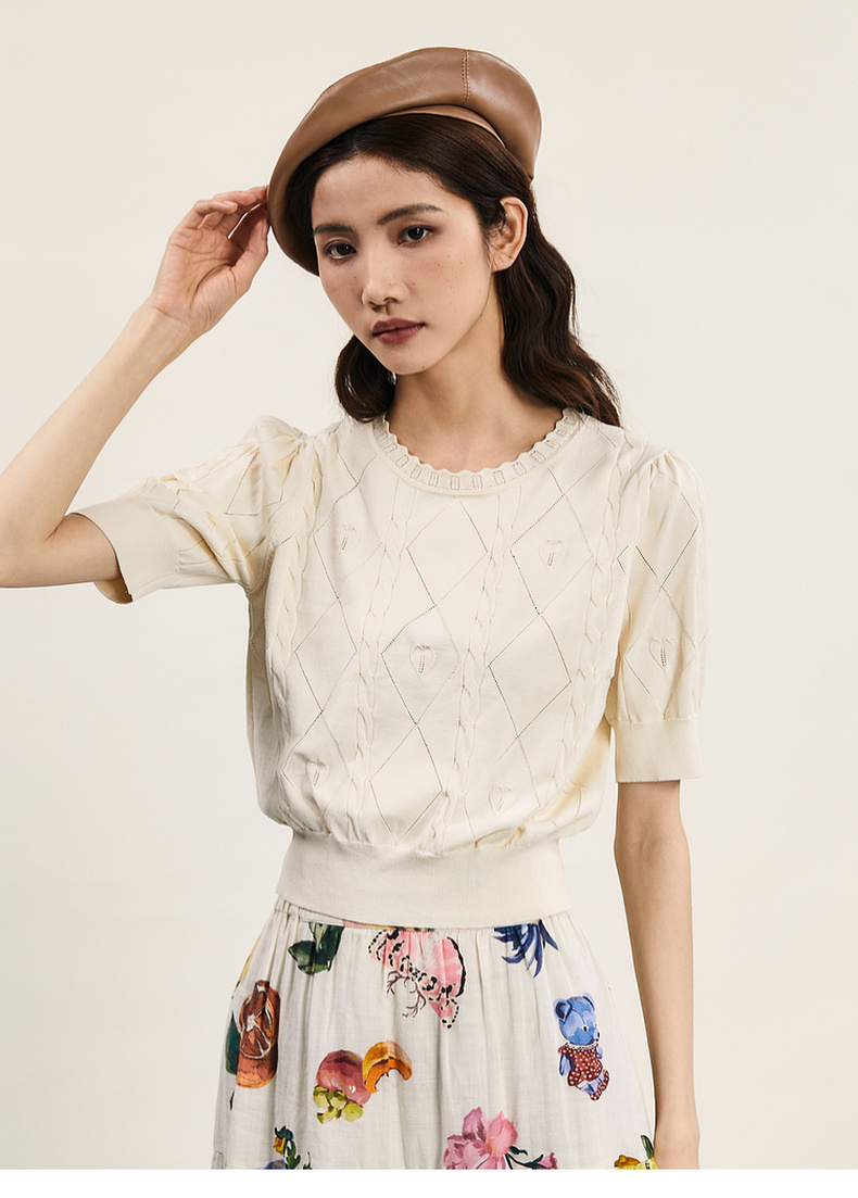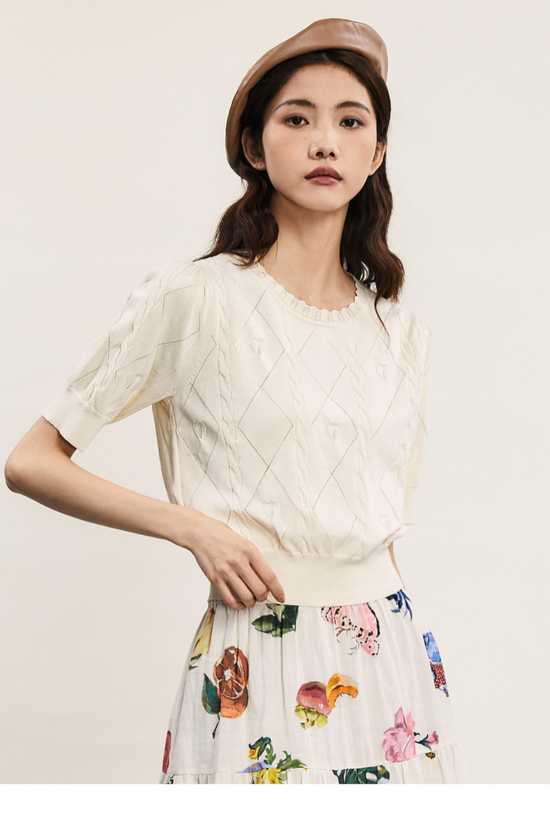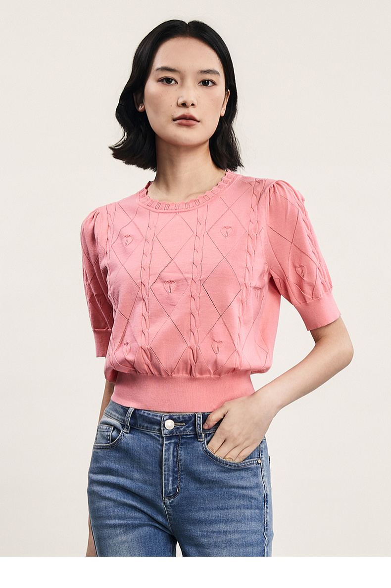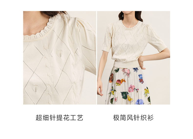 谜底套头针织衫短袖女2024年夏新品肌理感提花短款上衣242MZ0851