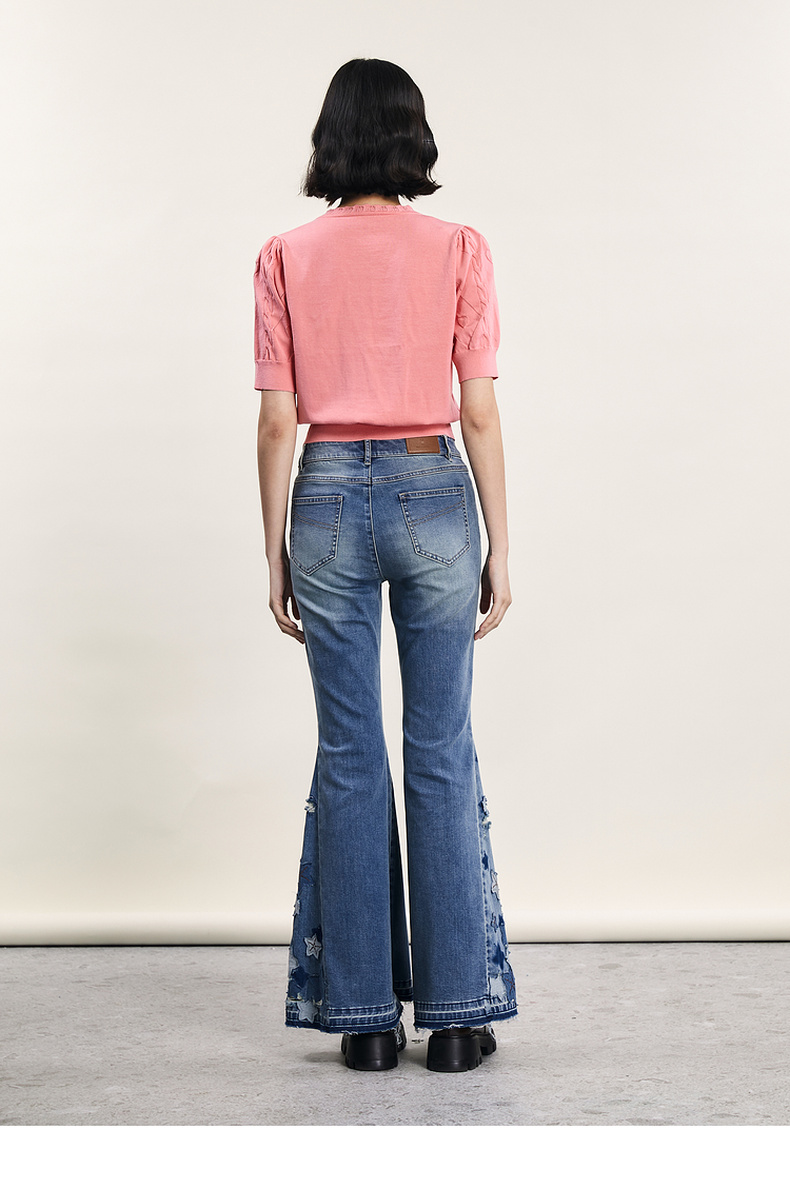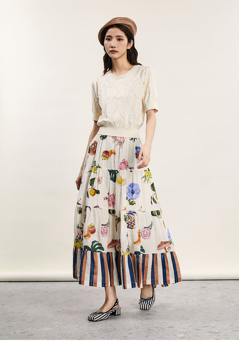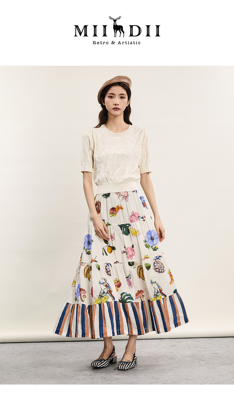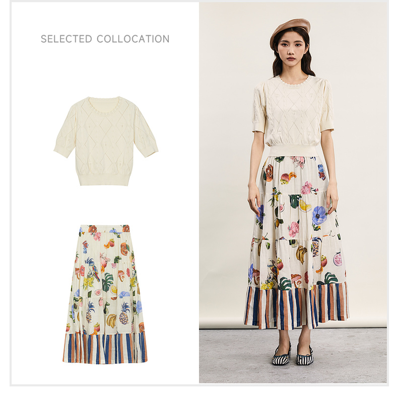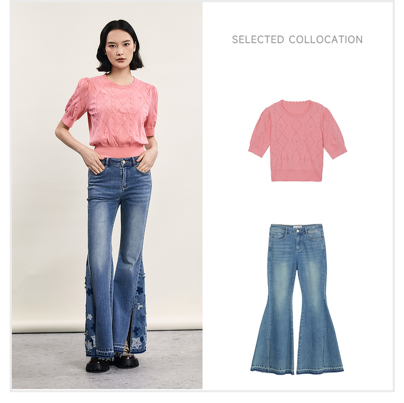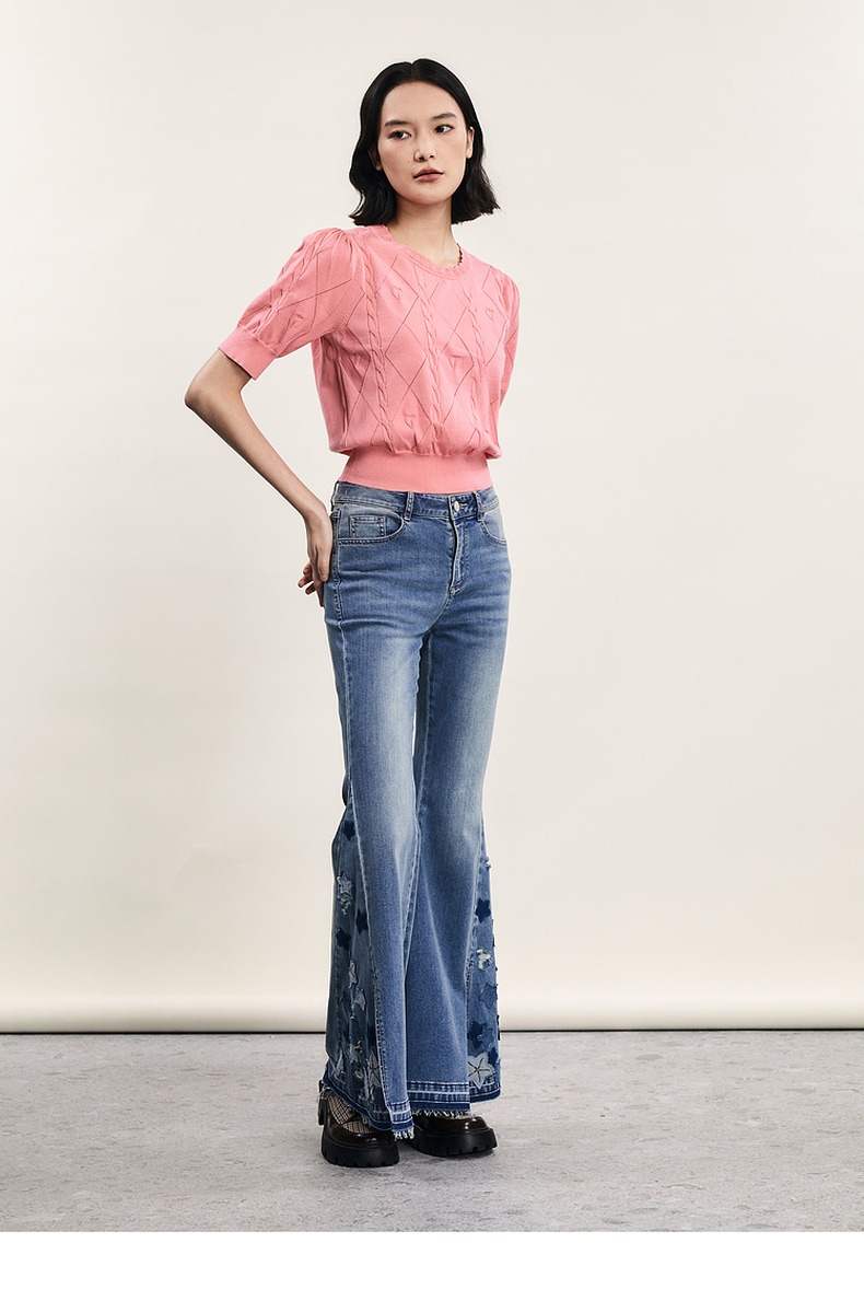 谜底套头针织衫短袖女2024年夏新品肌理感提花短款上衣242MZ0851