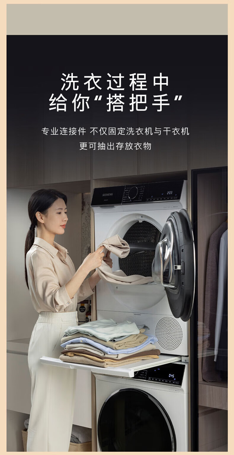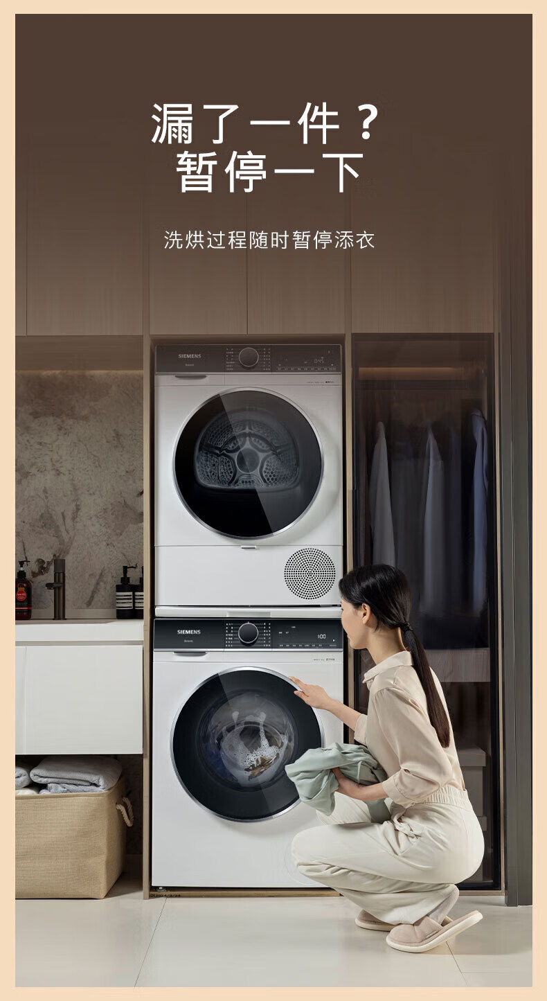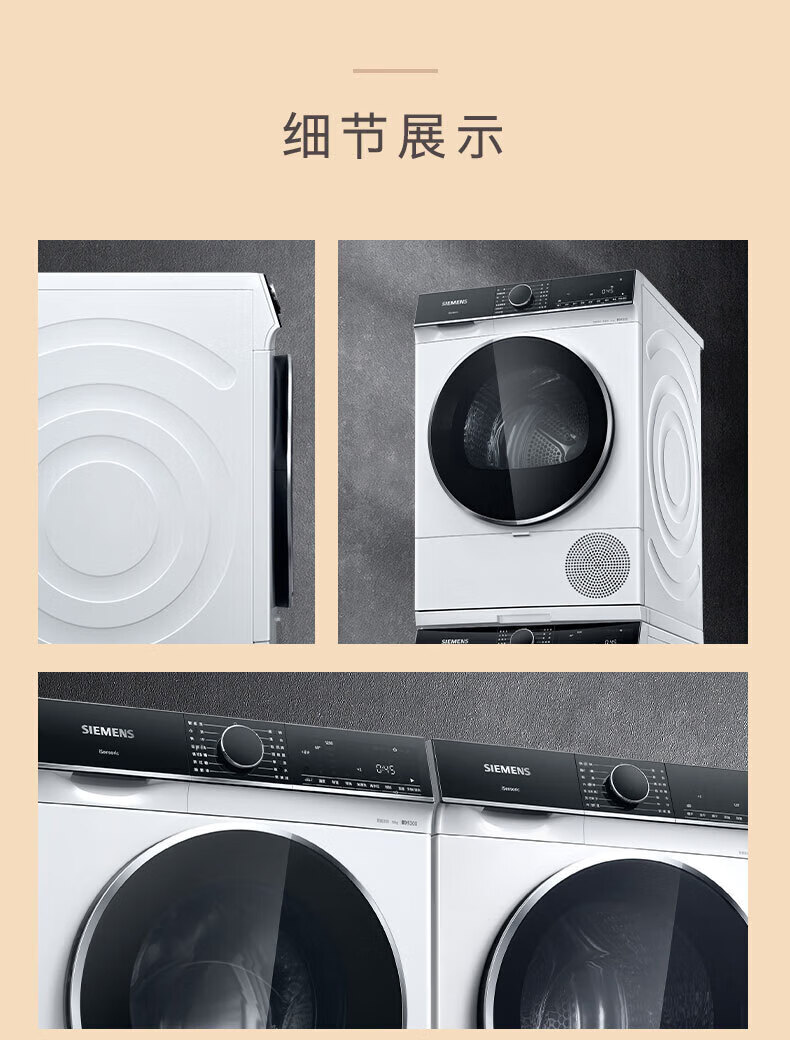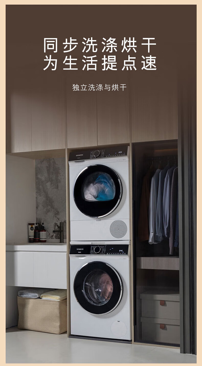 西门子(SIEMENS)【重磅推荐】10kg滚筒热泵洗烘套装 超大容量全自动洗衣机 一级能效健康除菌除螨筒自洁 衣干即停 套装二 WB25XLZ08W+WT25XM008W