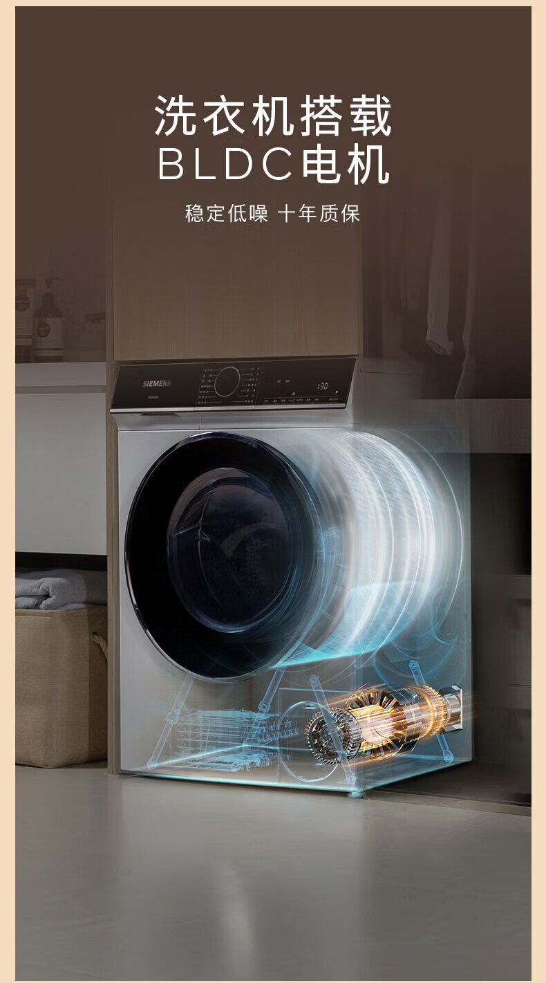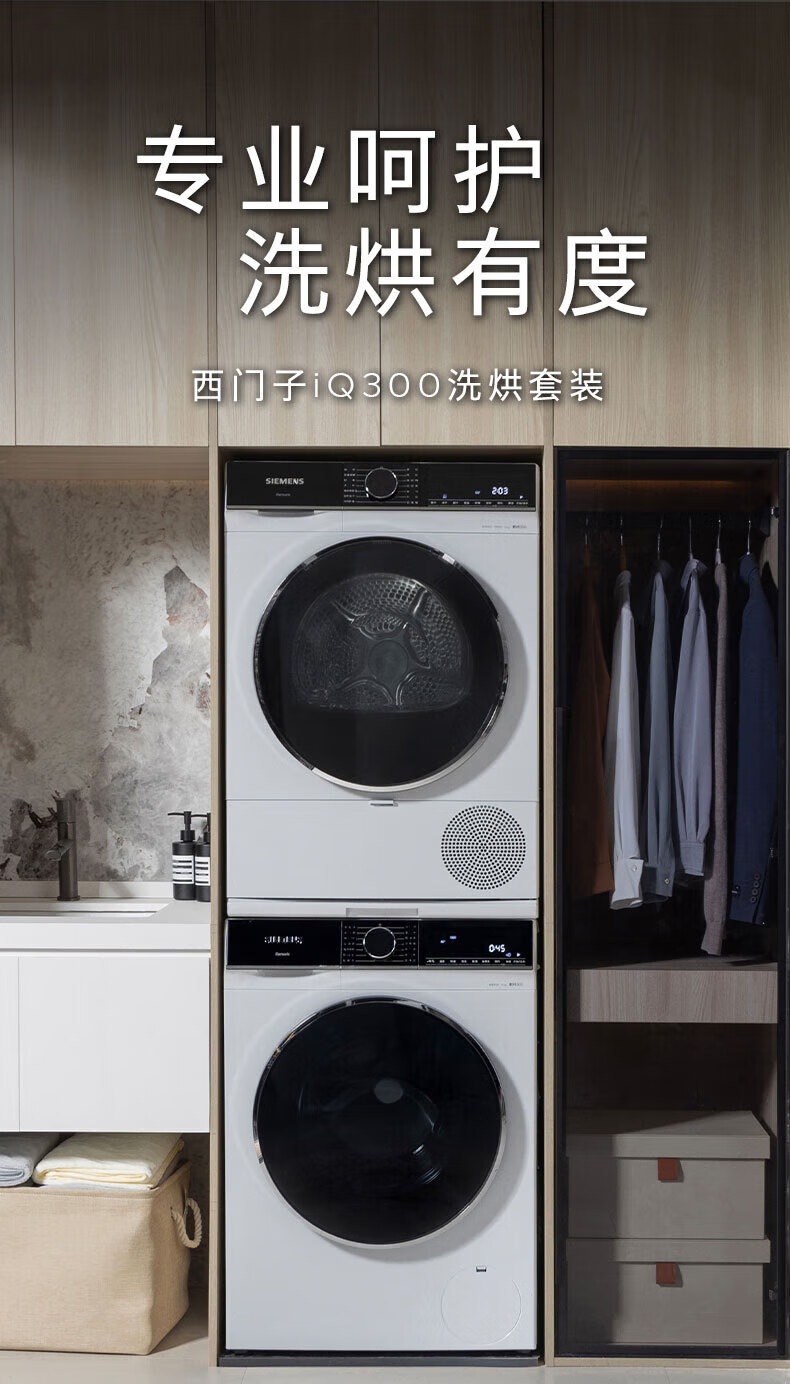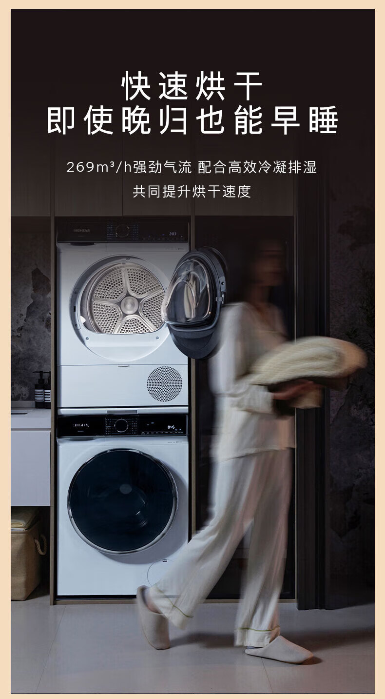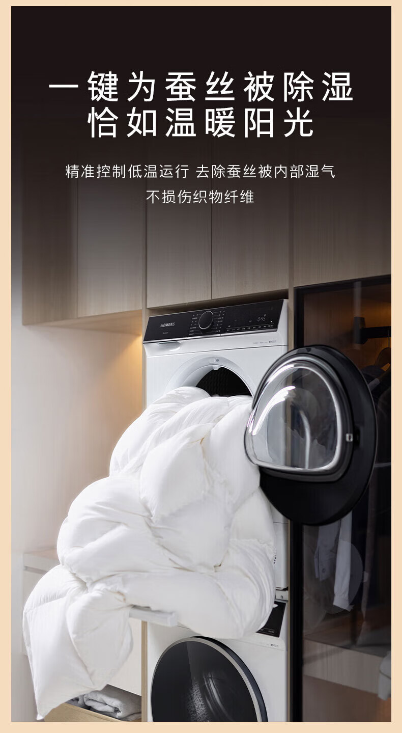 西门子(SIEMENS)【重磅推荐】10kg滚筒热泵洗烘套装 超大容量全自动洗衣机 一级能效健康除菌除螨筒自洁 衣干即停 套装二 WB25XLZ08W+WT25XM008W