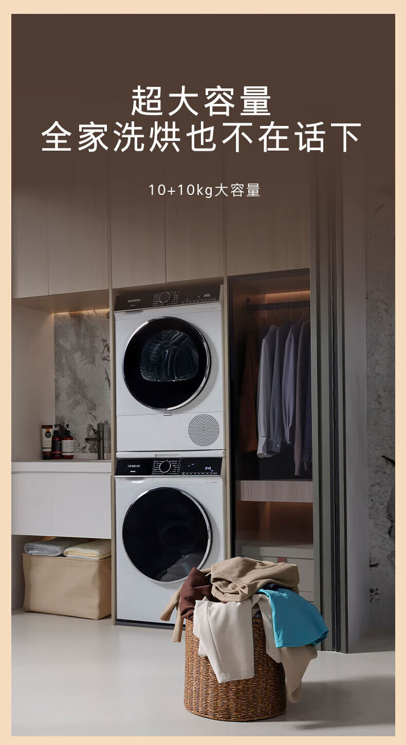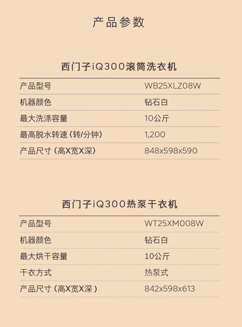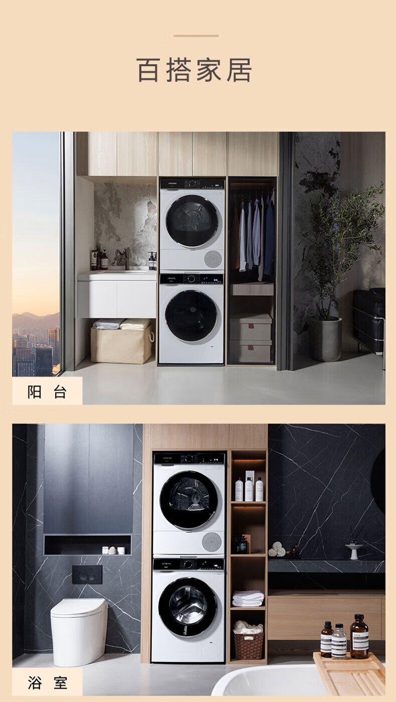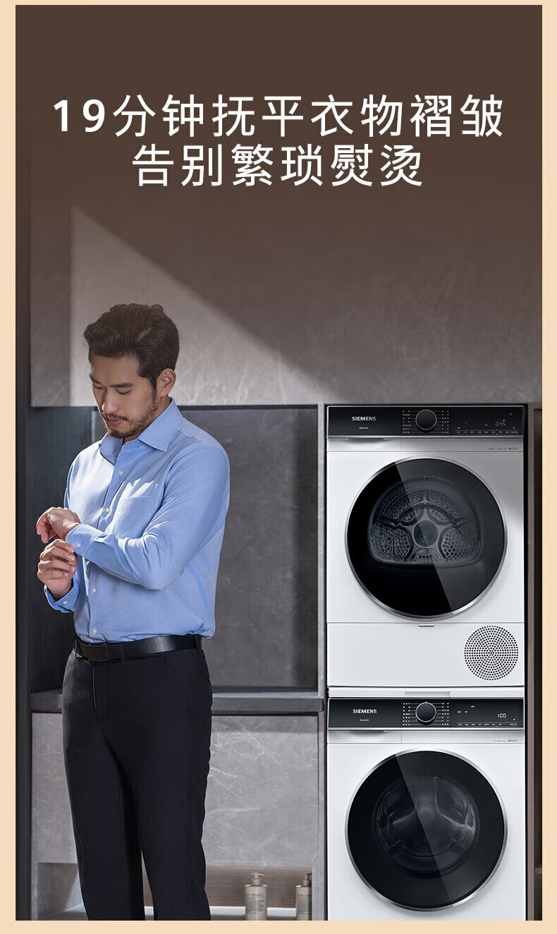 西门子(SIEMENS)【重磅推荐】10kg滚筒热泵洗烘套装 超大容量全自动洗衣机 一级能效健康除菌除螨筒自洁 衣干即停 套装二 WB25XLZ08W+WT25XM008W