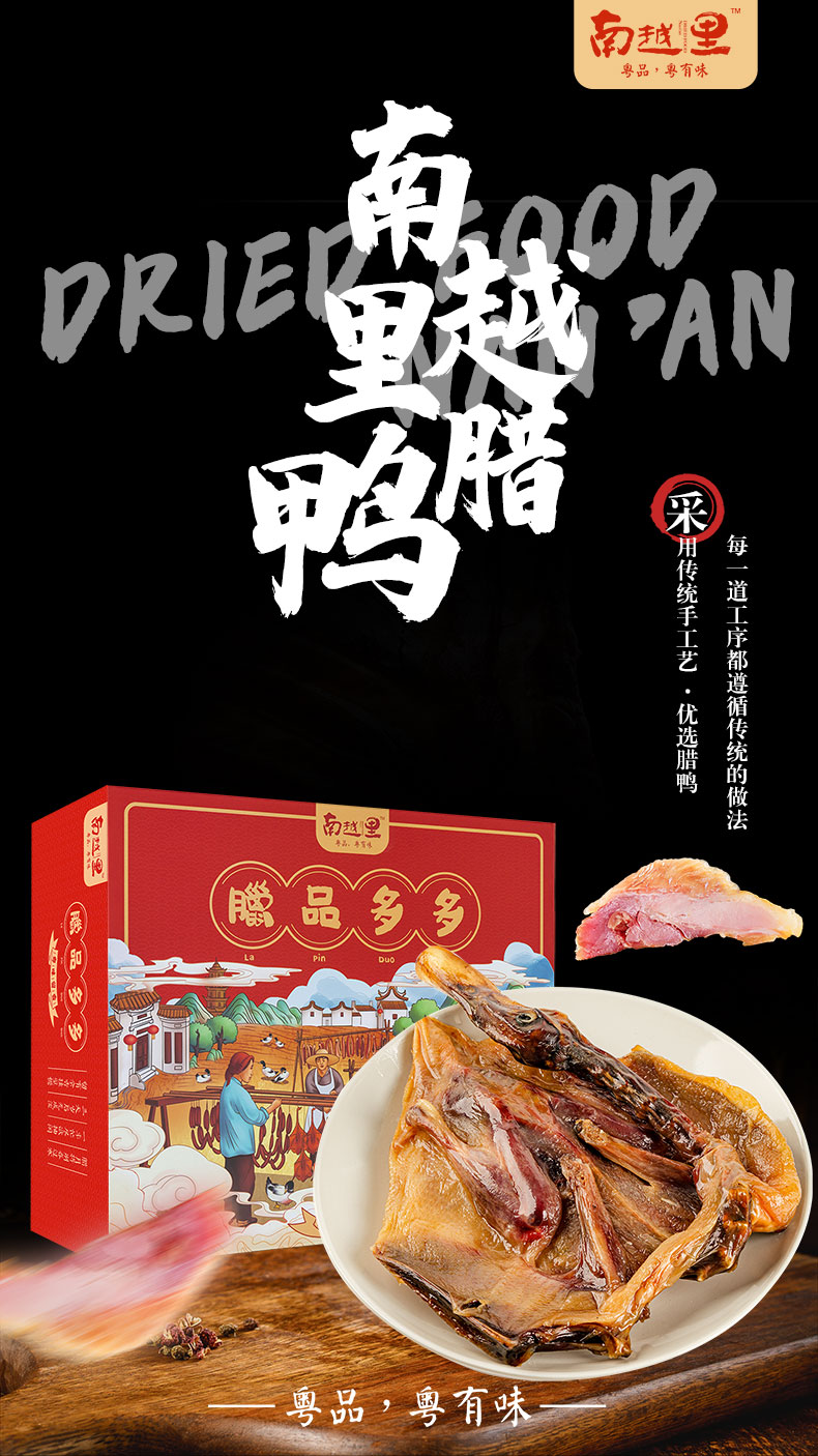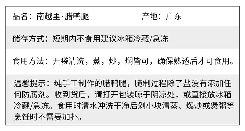 【地道风味丨南越里腊鸭700g/腊鸭腿350g】咸香入味透彻,每一口都唇齿留香在嘴边,肉质不油腻,表皮油黄呈亮色,内里鸭肉呈火腿红,肉质紧实腊味十足,煲汤炒菜焖饭都美味