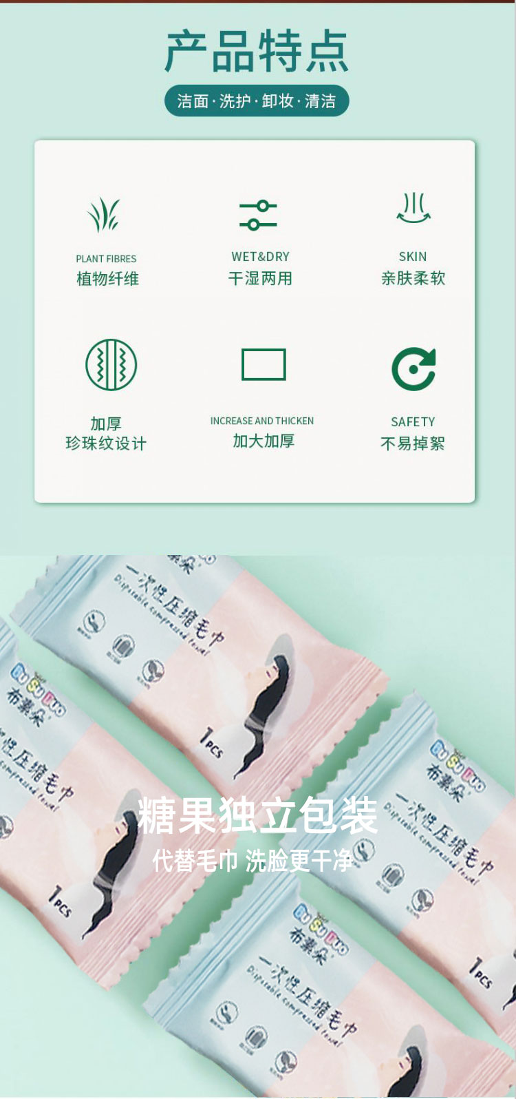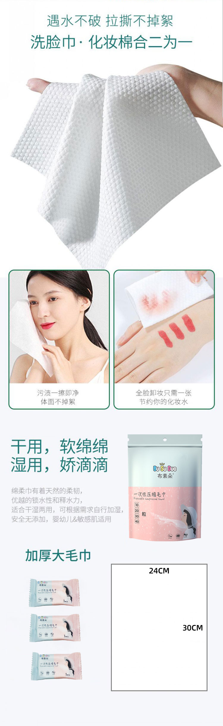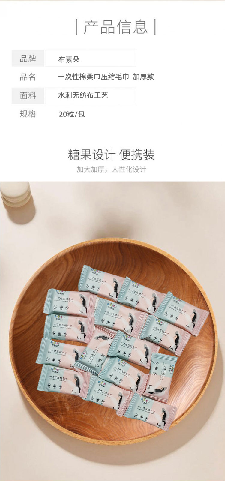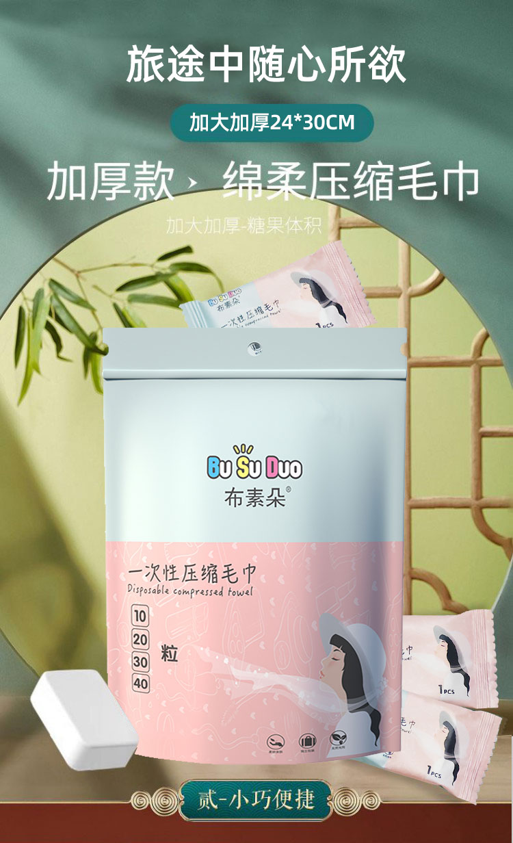 布素朵 纯棉压缩毛巾 旅行装小方巾便携式加大加厚糖果压缩一次性毛巾化妆棉干湿两用