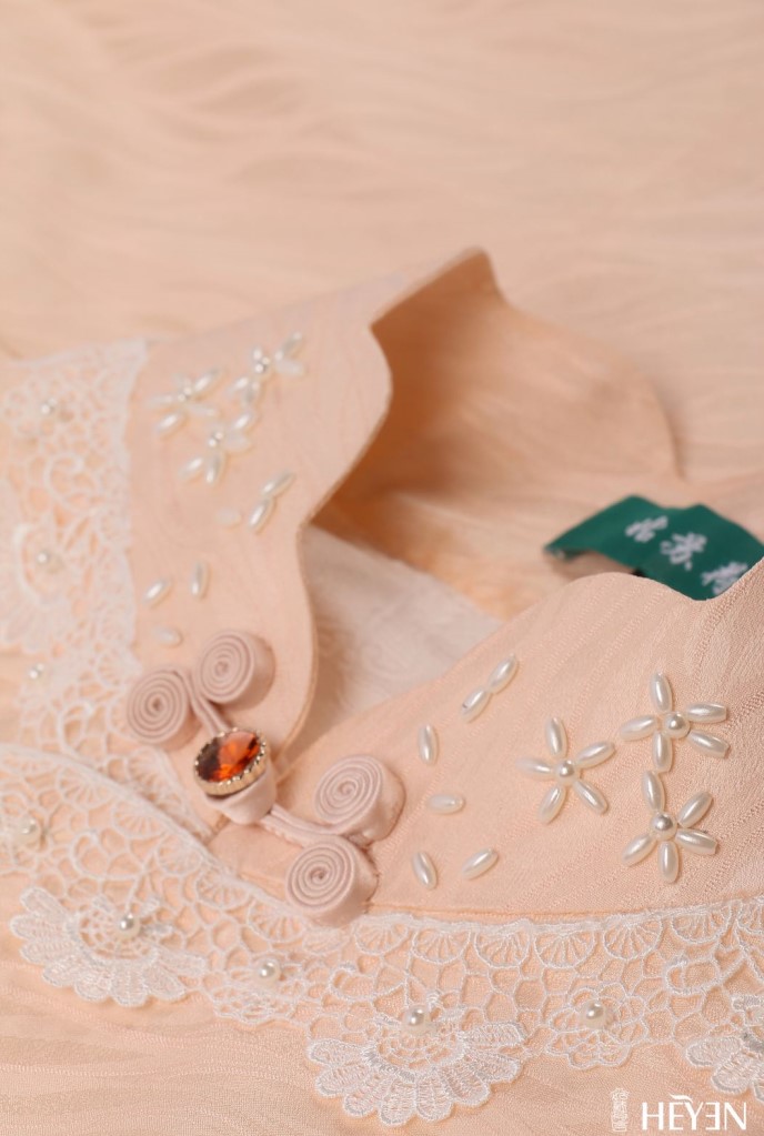 柳叶纹真丝提花重绉面料,浪漫的初桃粉色,感染了周遭的氛围都甜蜜了起来。