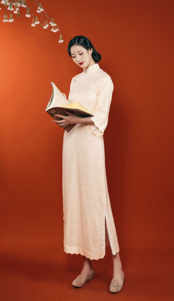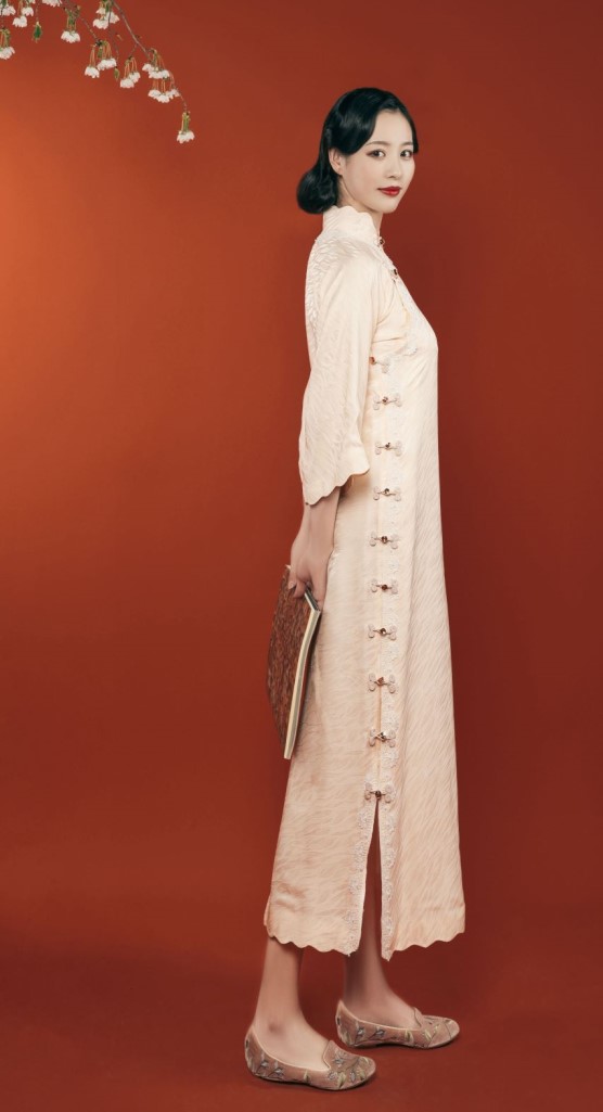 平裁的旗袍,就是很复古啊,将闺阁少女心化作一枚枚有趣的盘香扣,诗书气韵浓厚。