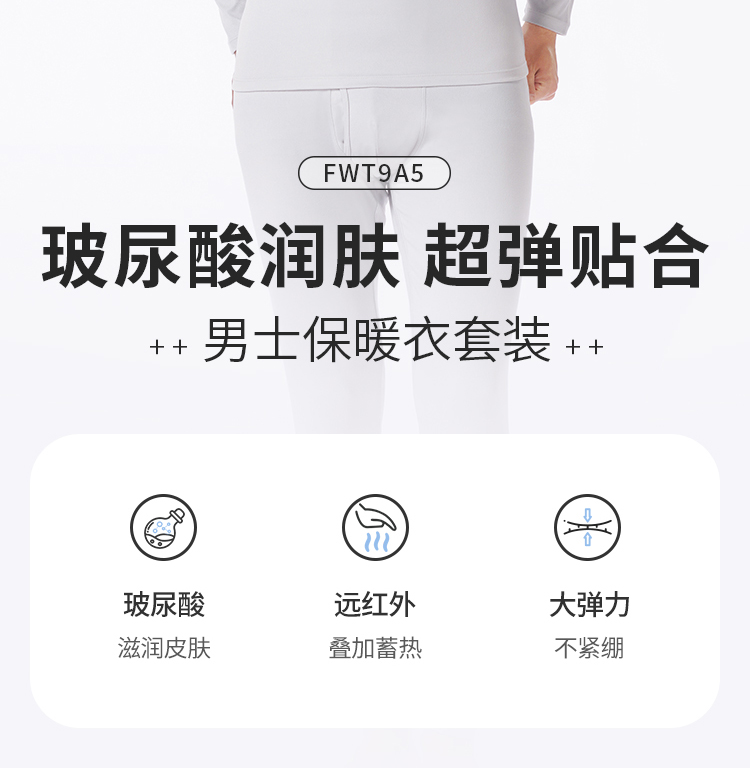 都市丽人都市锋尚保暖衣轻暖套装阳离子罗纹绒3.0薄男士保暖衣套装FWT9A5