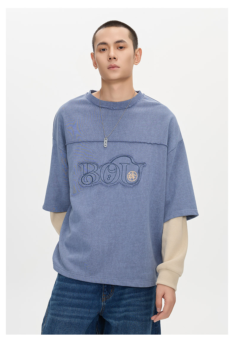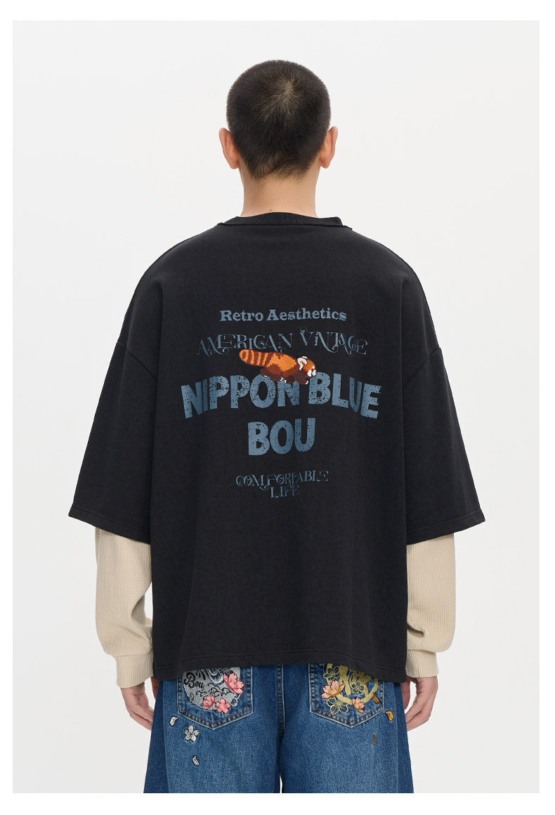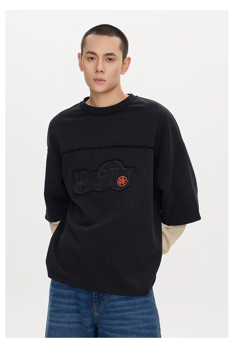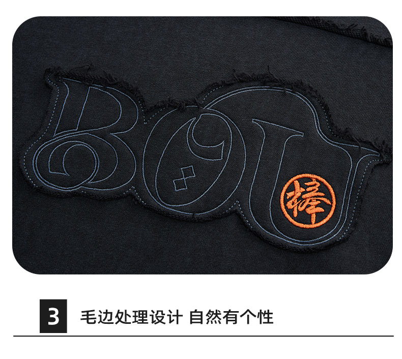 ONIARAI/鬼洗25秋冬棒小熊猫洗褪毛边假两件套头卫衣男式 N240156