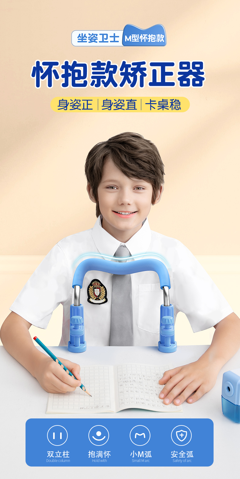 猫太子儿童坐姿卫士M型护栏式矫正器防近视支架小学生学习纠正姿势