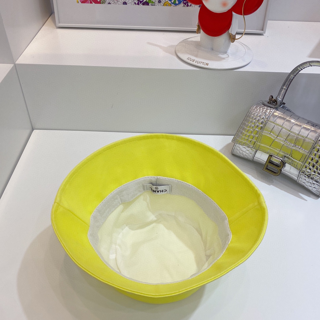 chanel小香shi家新款彩色纯棉渔夫🔝帽-黄色