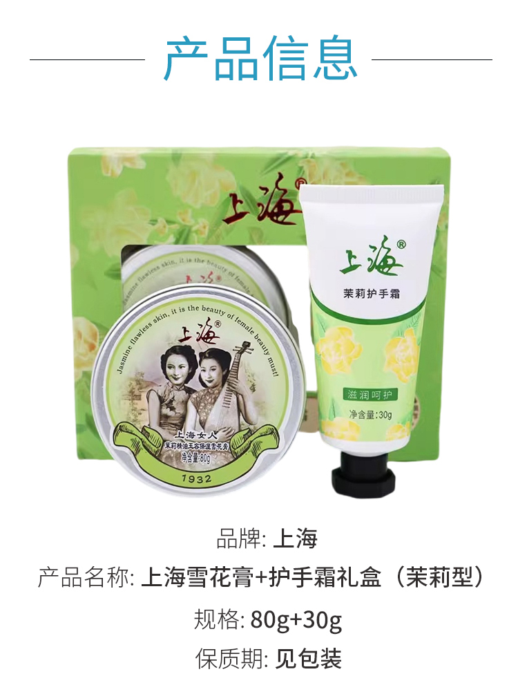 上海女人茉莉雪花膏+护手霜礼盒