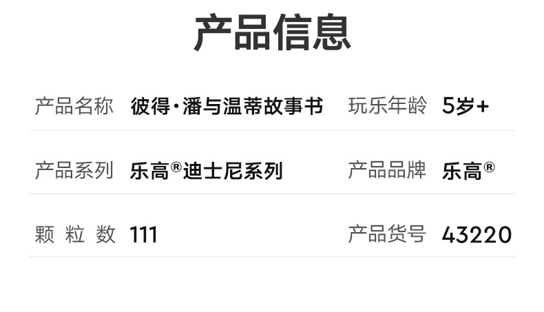 乐高迪士尼系列L43220彼得潘和温蒂的故事书儿童益智拼插积木玩具