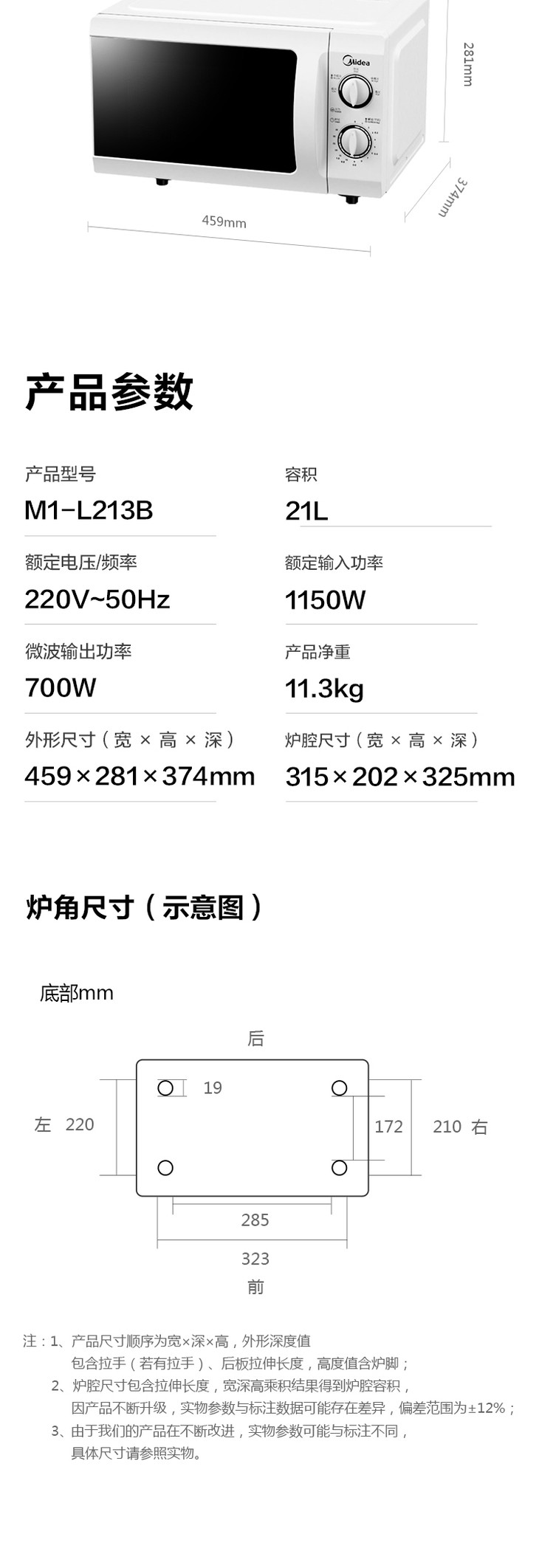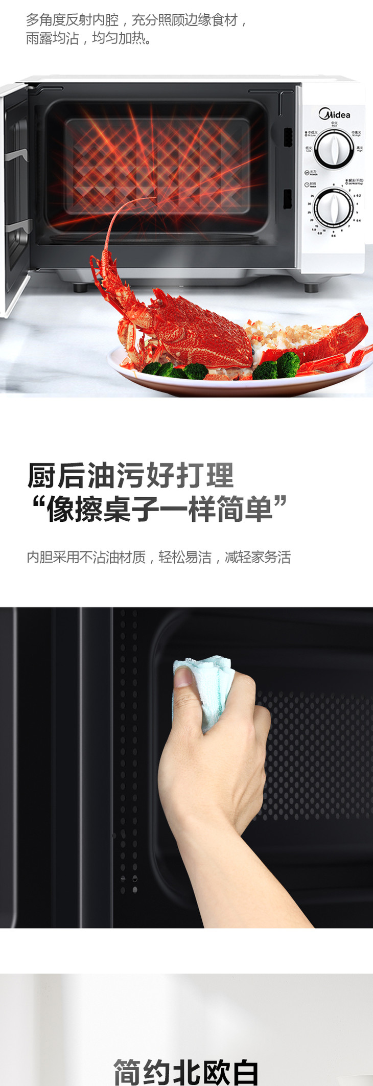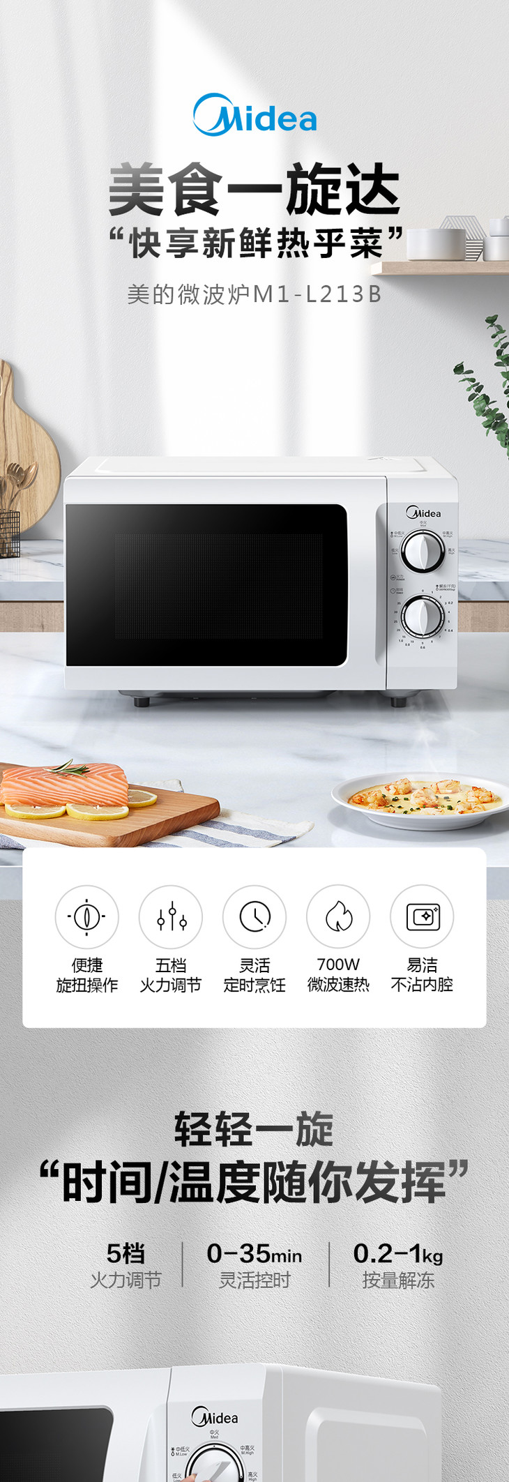 美的微波炉机械旋钮老式经典款双旋钮五档火力35分钟定时侧开门21L特价款M1-211A解冻老人用台式 21升 白色