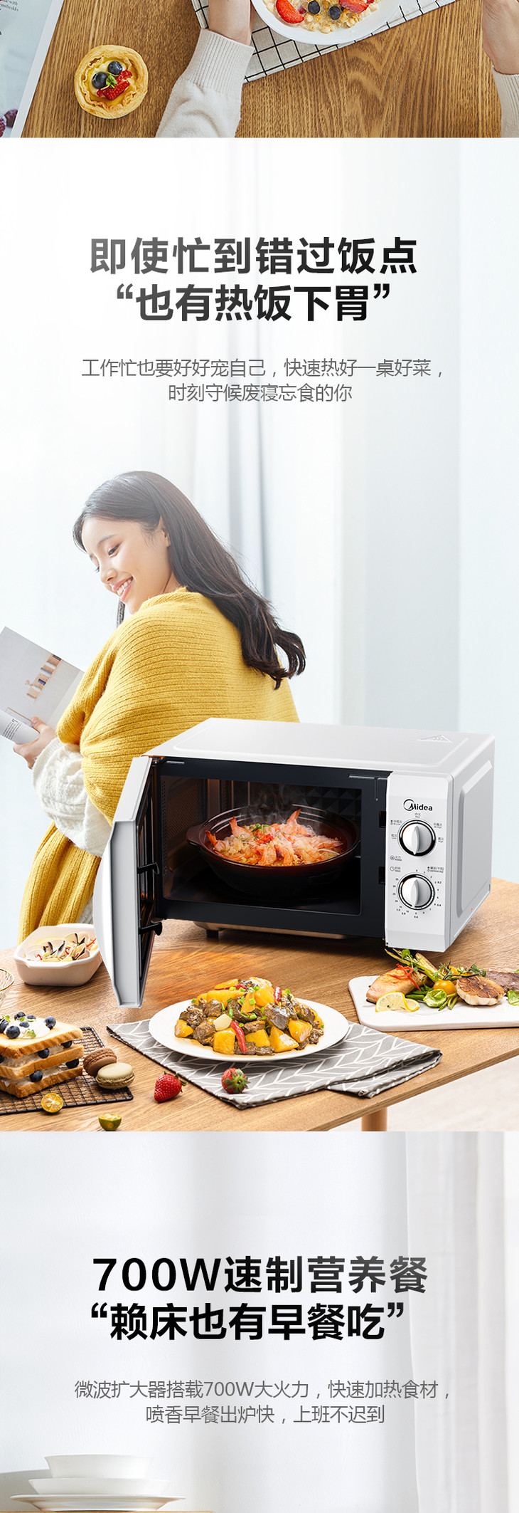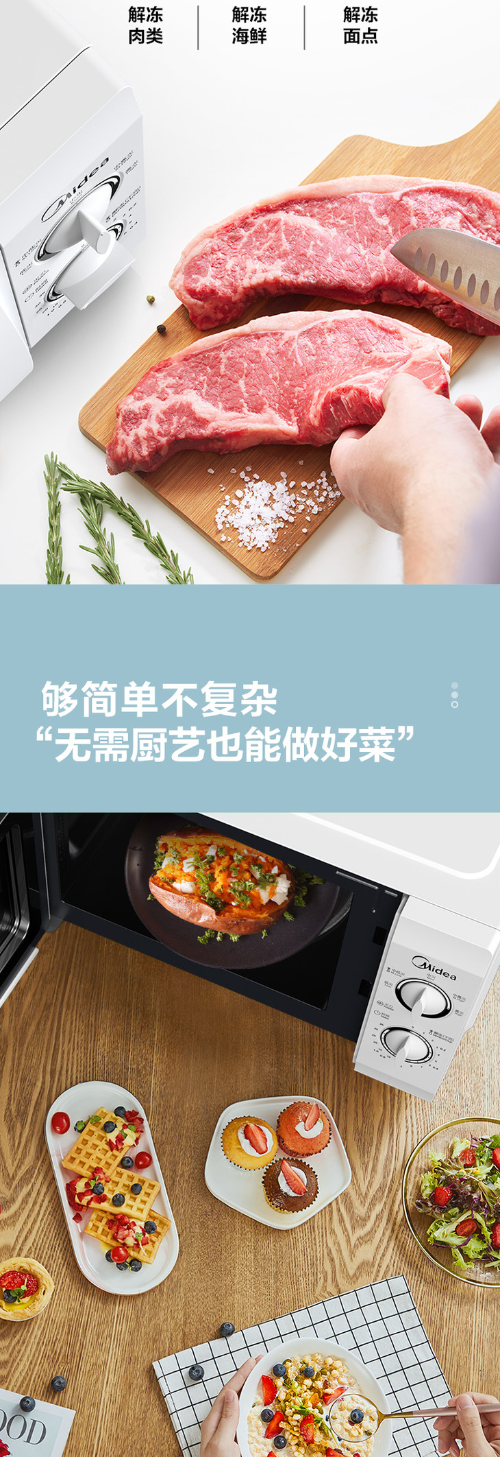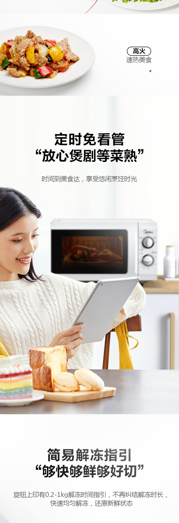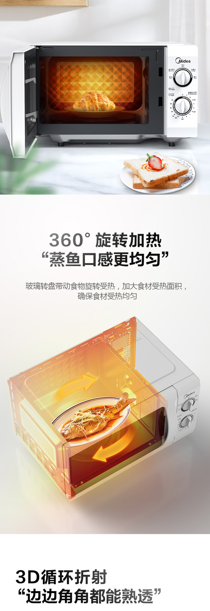 美的微波炉机械旋钮老式经典款双旋钮五档火力35分钟定时侧开门21L特价款M1-211A解冻老人用台式 21升 白色
