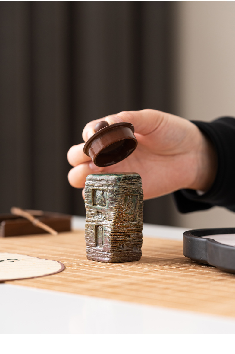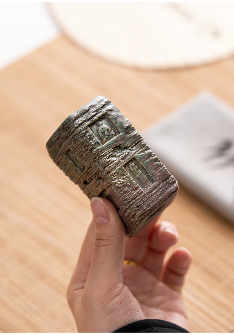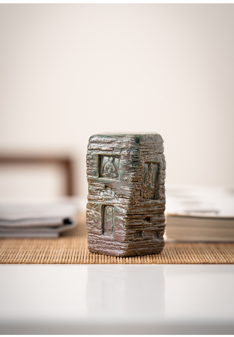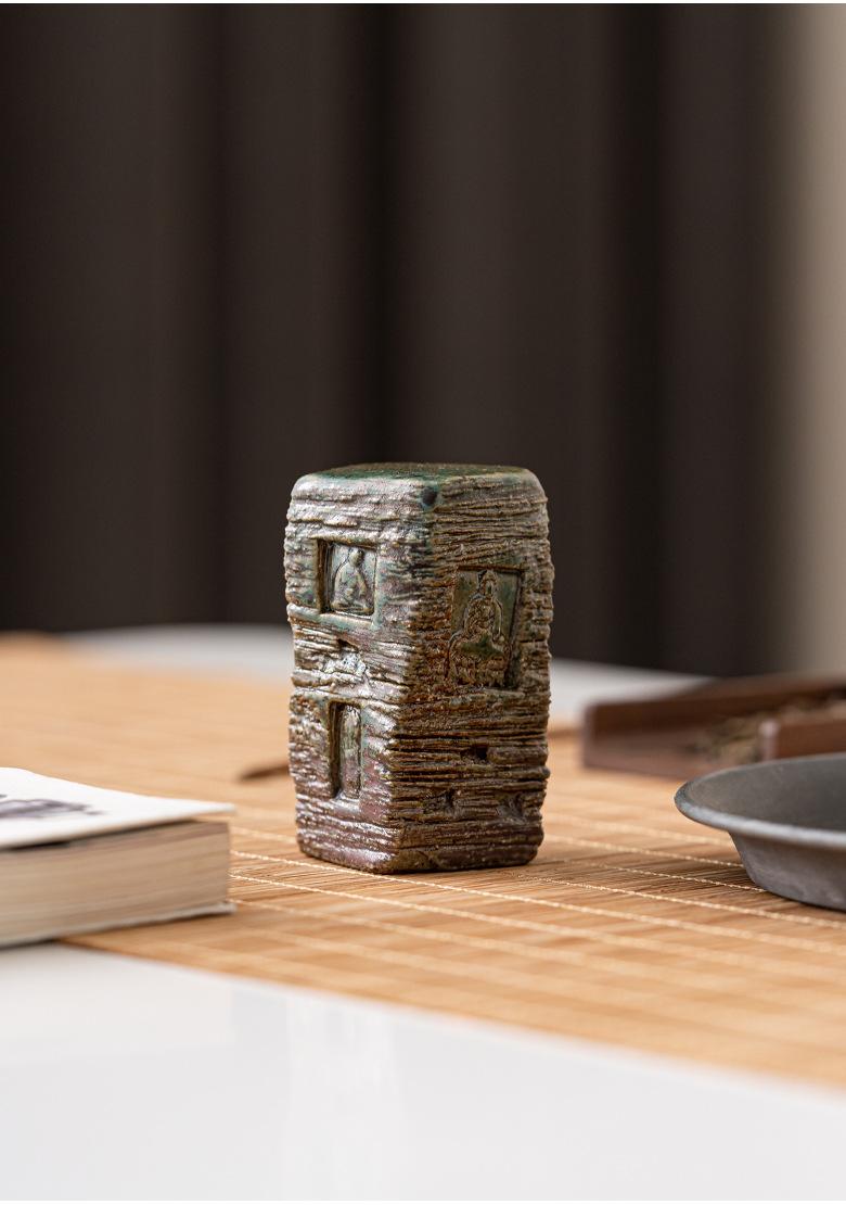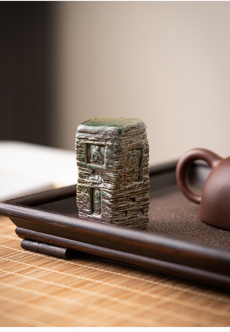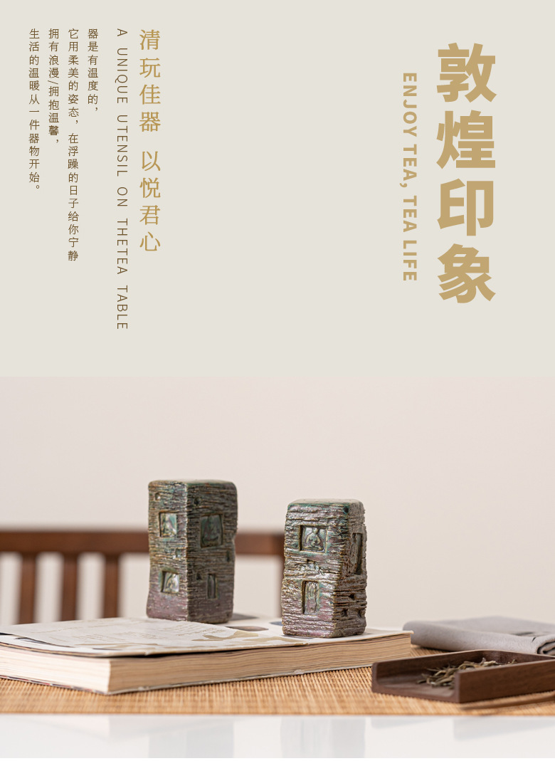 敦煌印象青铜釉盖置茶桌面复古茶玩摆件盖碗茶壶茶漏盖托盖子架