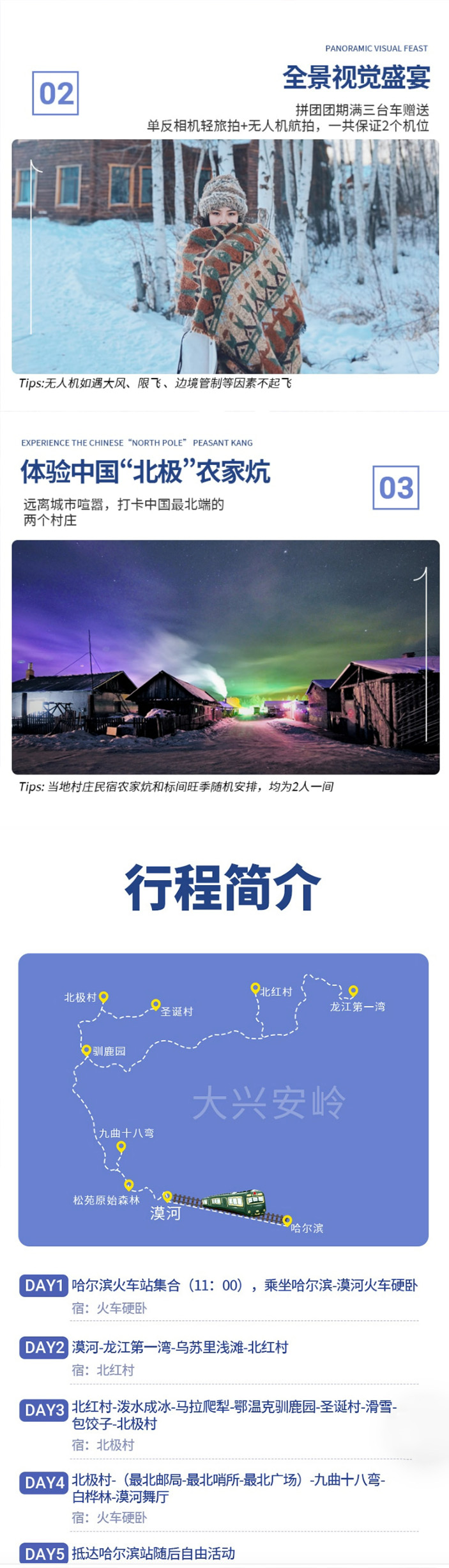【东北·漠河】5天4晚·雪国列车遇见极光 2人成团(哈尔滨起止 | 马拉爬犁+北红村+北极村+圣诞村+鄂温克驯鹿园+乌苏里浅滩+漠河舞厅)