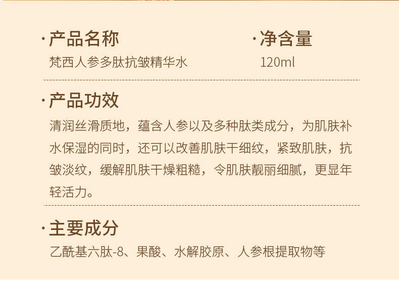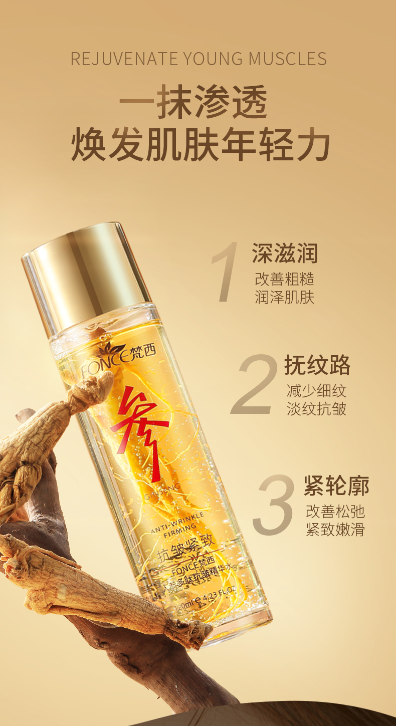 【梵西新品 119元任选3件】梵西人参多肽抗皱精华水紧致水补水面霜官方正品保湿焕颜护肤正品 120ml/瓶