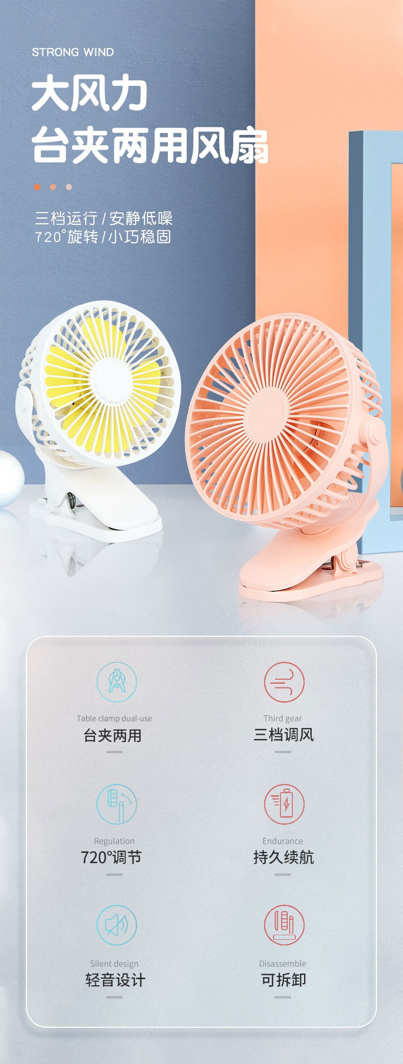 【夏日清凉必备!新款USB便携式风扇】马卡龙七彩微光泛起。720°倒挂旋转,便携设计,3档静音。网罩轻拆洗,清新永留,超长续航,学生与上班族必备!